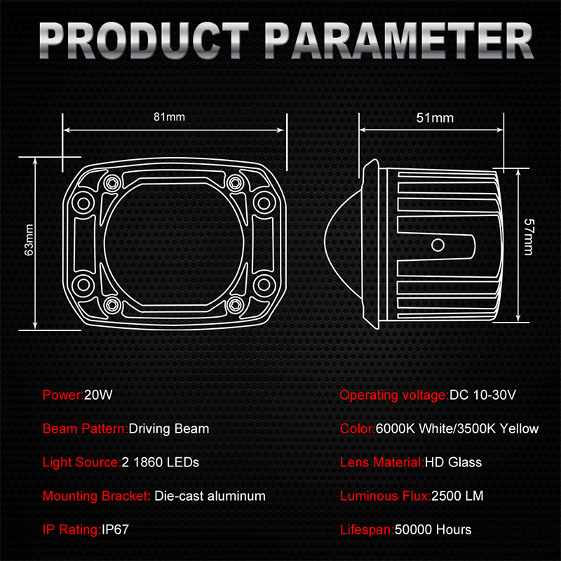 Color Temperature: 6000K White/4000k Yellow