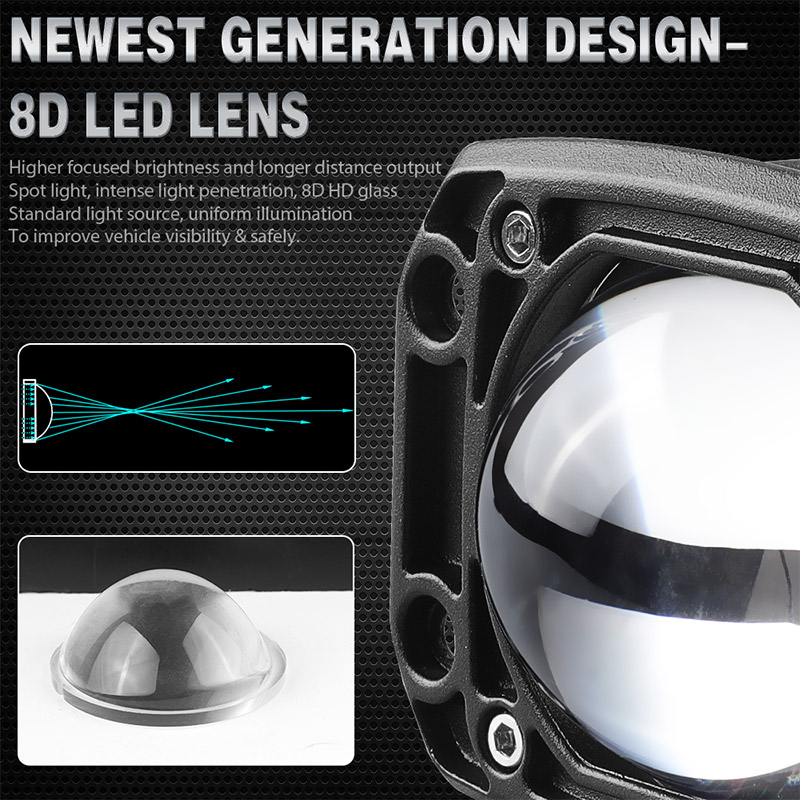 *New 8D LED Lens. Higher focused brightness and longer distance output spot light, intense light penetration. 8D HD glass standard light source, uniform illumination to improve vehicle visibility and safety.