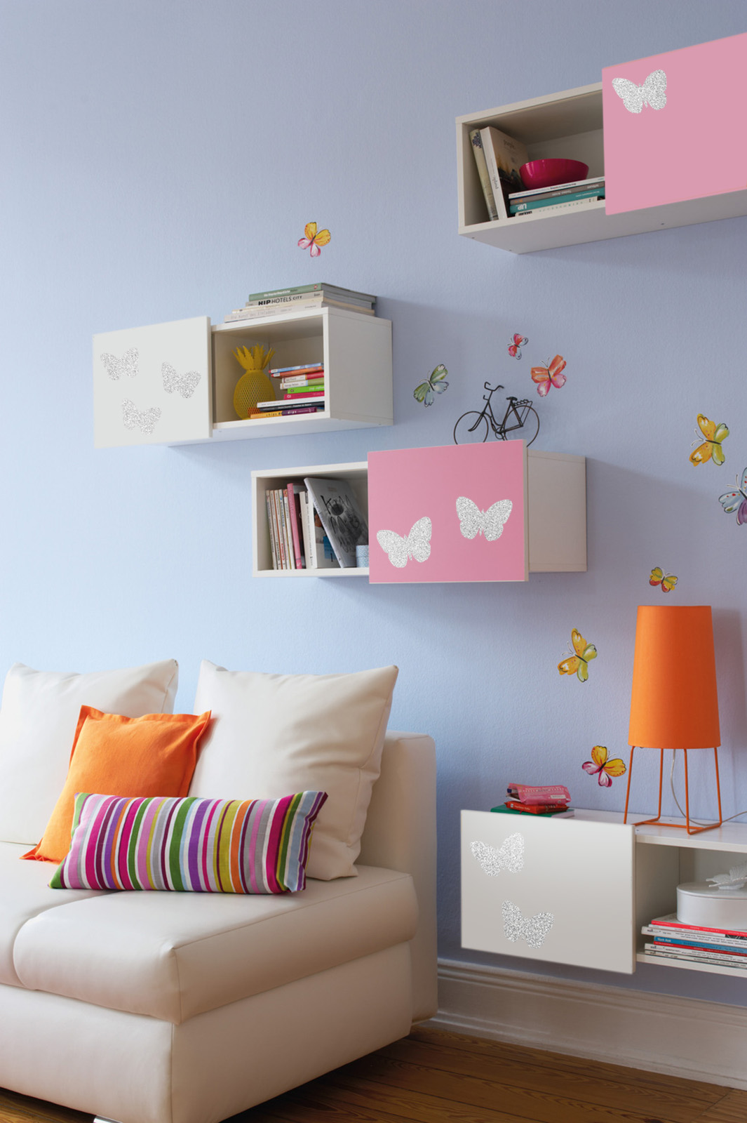Vor allem Selbstklebefolien in Glitteroptik, Holzoptik, Betonoptik und Naturmotiven sind gebrauchsfertig und leicht zu verarbeiten.