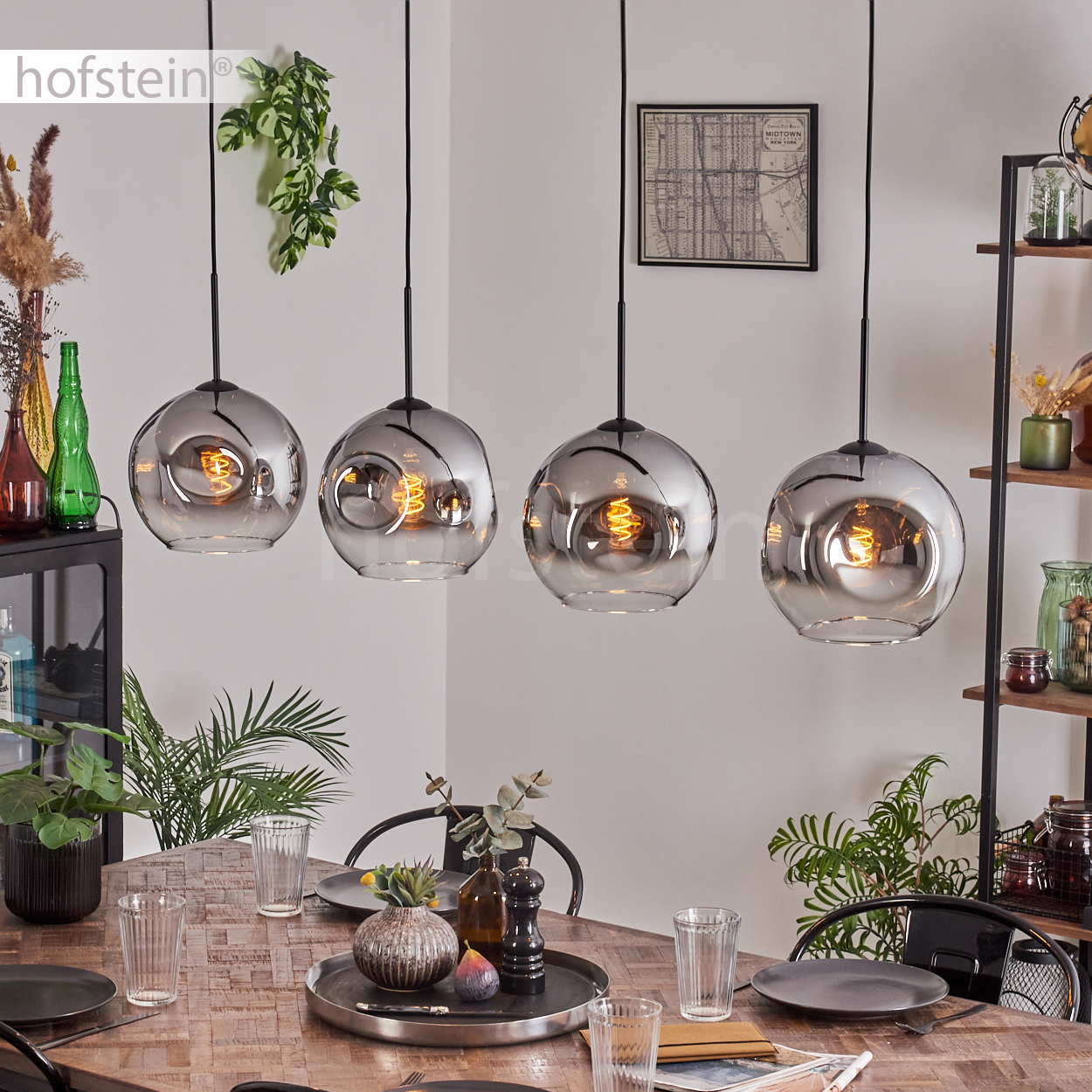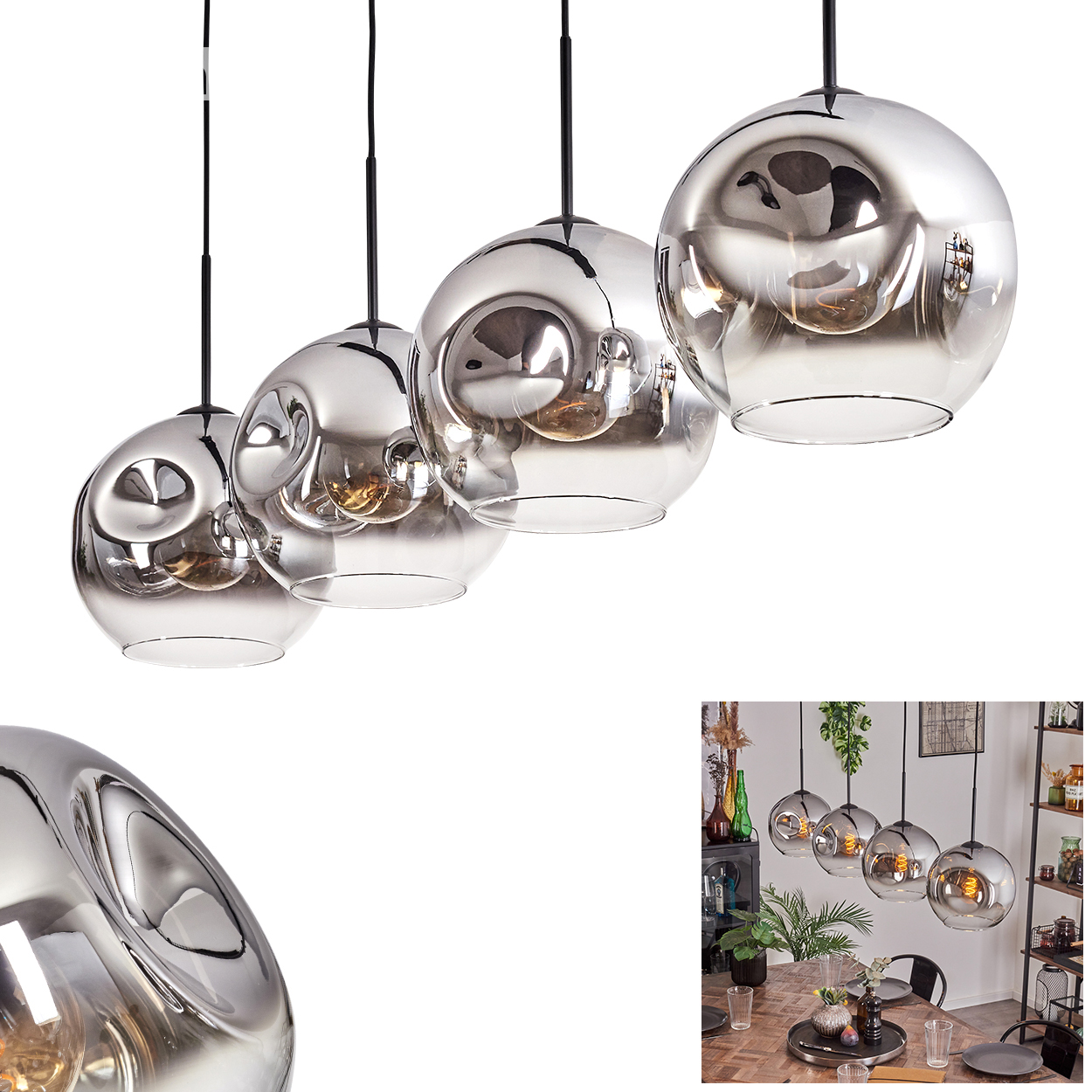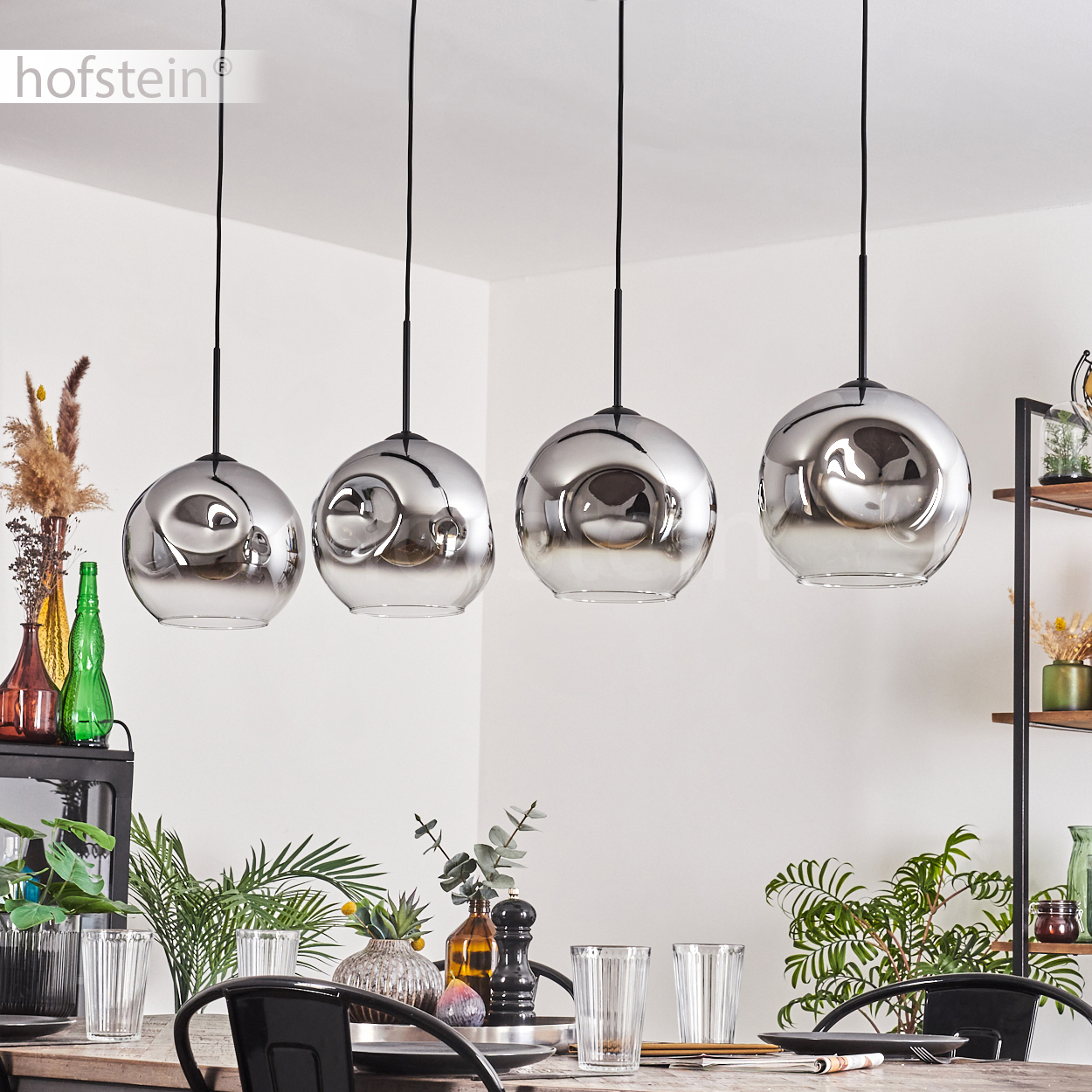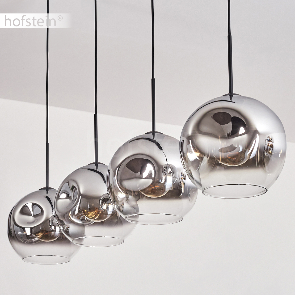 Pendel Hänge Leuchten Glas Chrom Klar 4-flammig Wohn Zimmer Küchen Flur Lampen