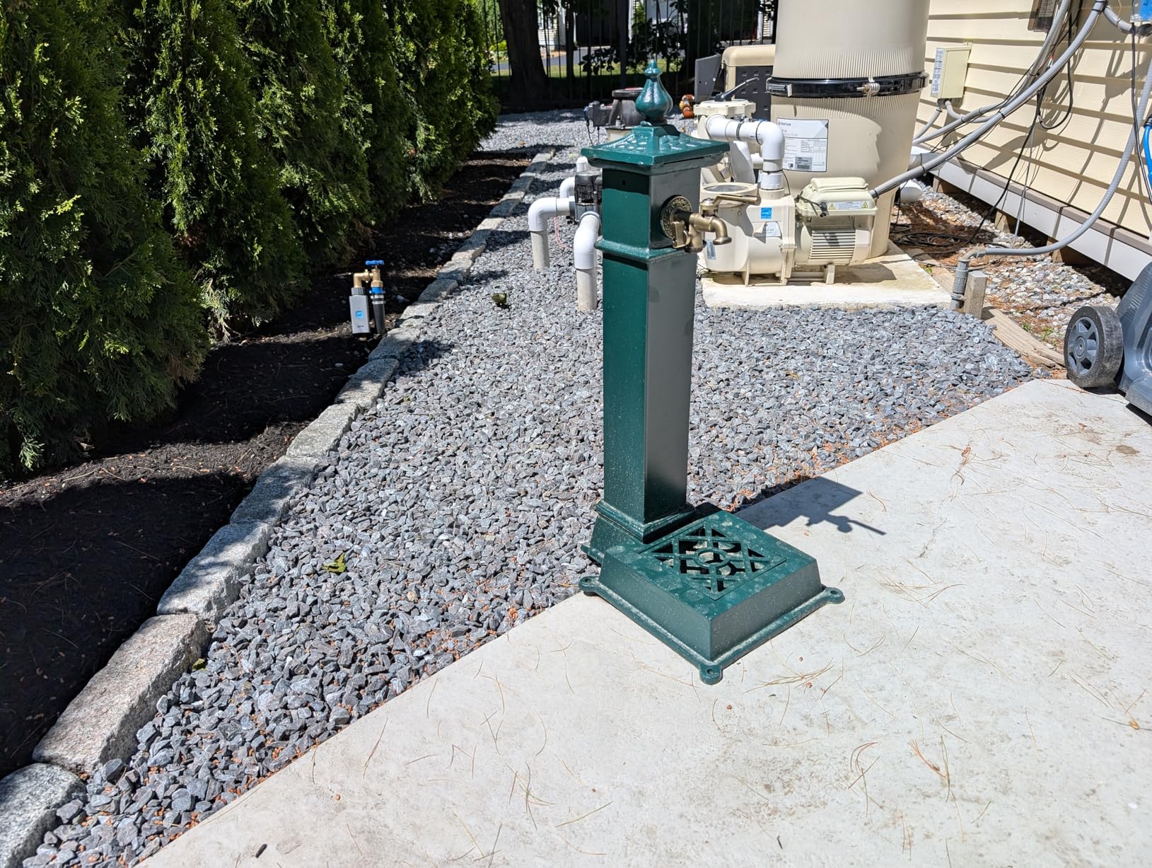 The garden water column is made from cast iron with