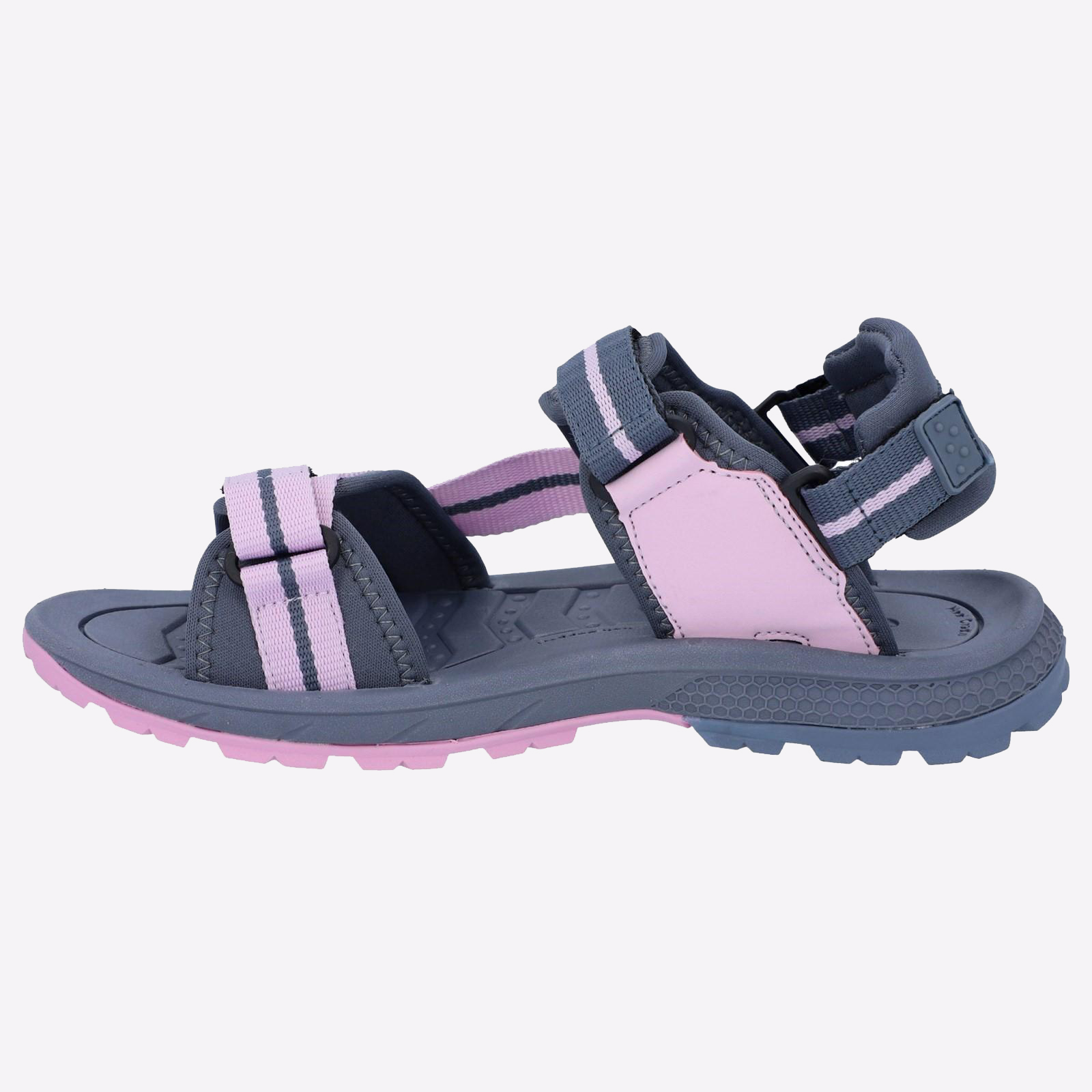- Adjustable two strap webbing sandal with moulded strap closures