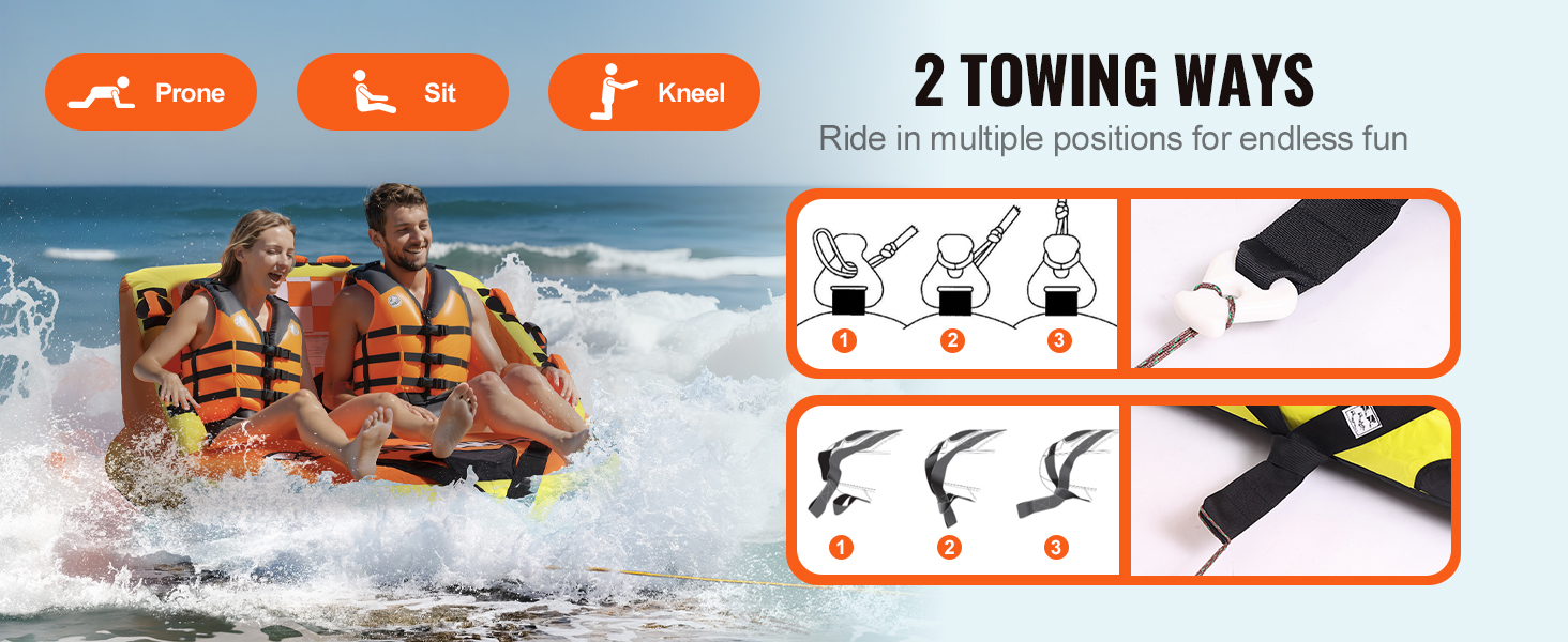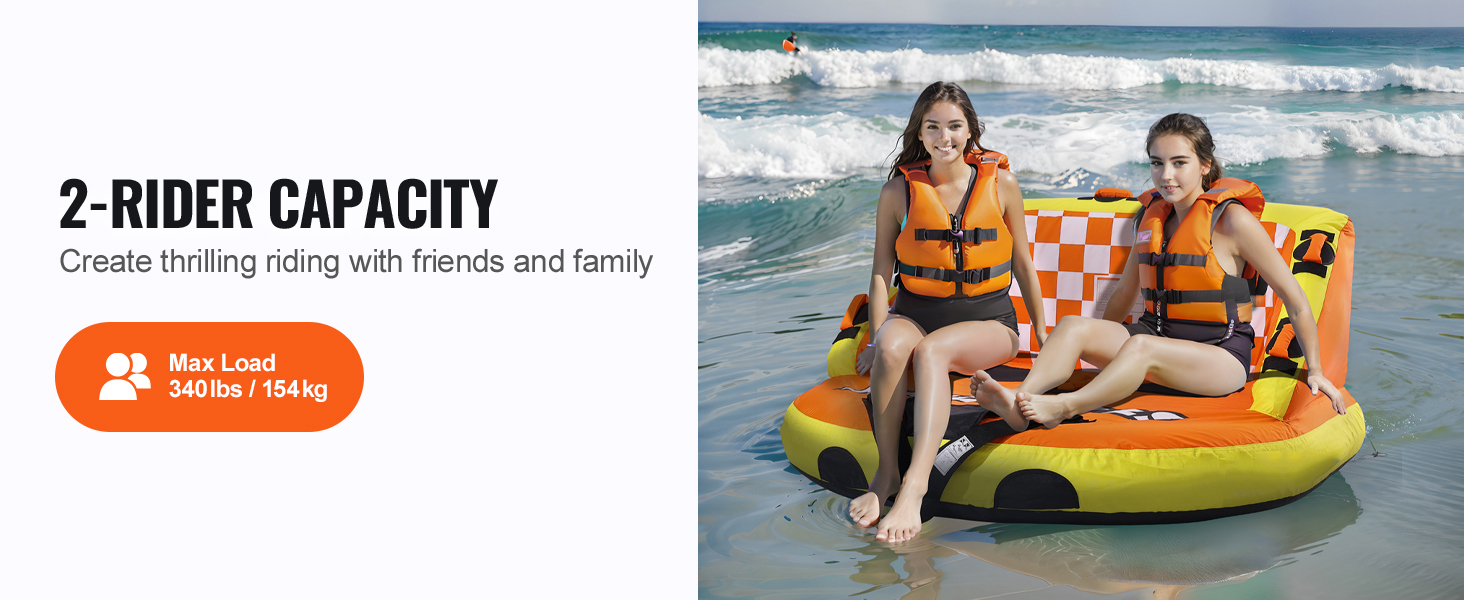 Create unforgettable moments with your partner or friend on this two-person inflatable boat tube. Designed with a spacious and stable deck, it offers a secure and balanced ride for users of all ages, making it perfect for family outings, friends, or couples seeking adventure.