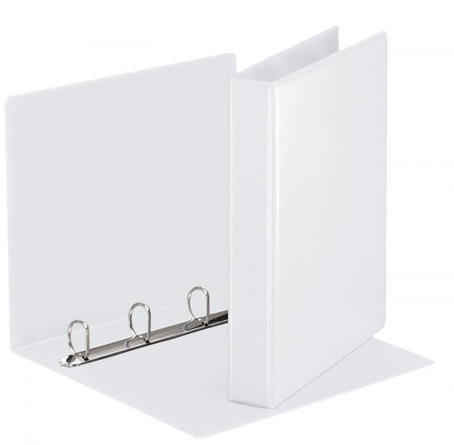 Esselte Präsentations-Ringbuch Essentials, A4, weiß, 4D-Ring Mechanik, Rückenbreite: 50 mm, Ringdurchmesser: 30 mm, Fassungsvermögen: 300 Blatt, mit 2 Außentaschen auf Vorder- deckel und Rücken, aus PP, aus 70% recyceltem Material, Maße: (T)265 x (H)318 mm (49703)