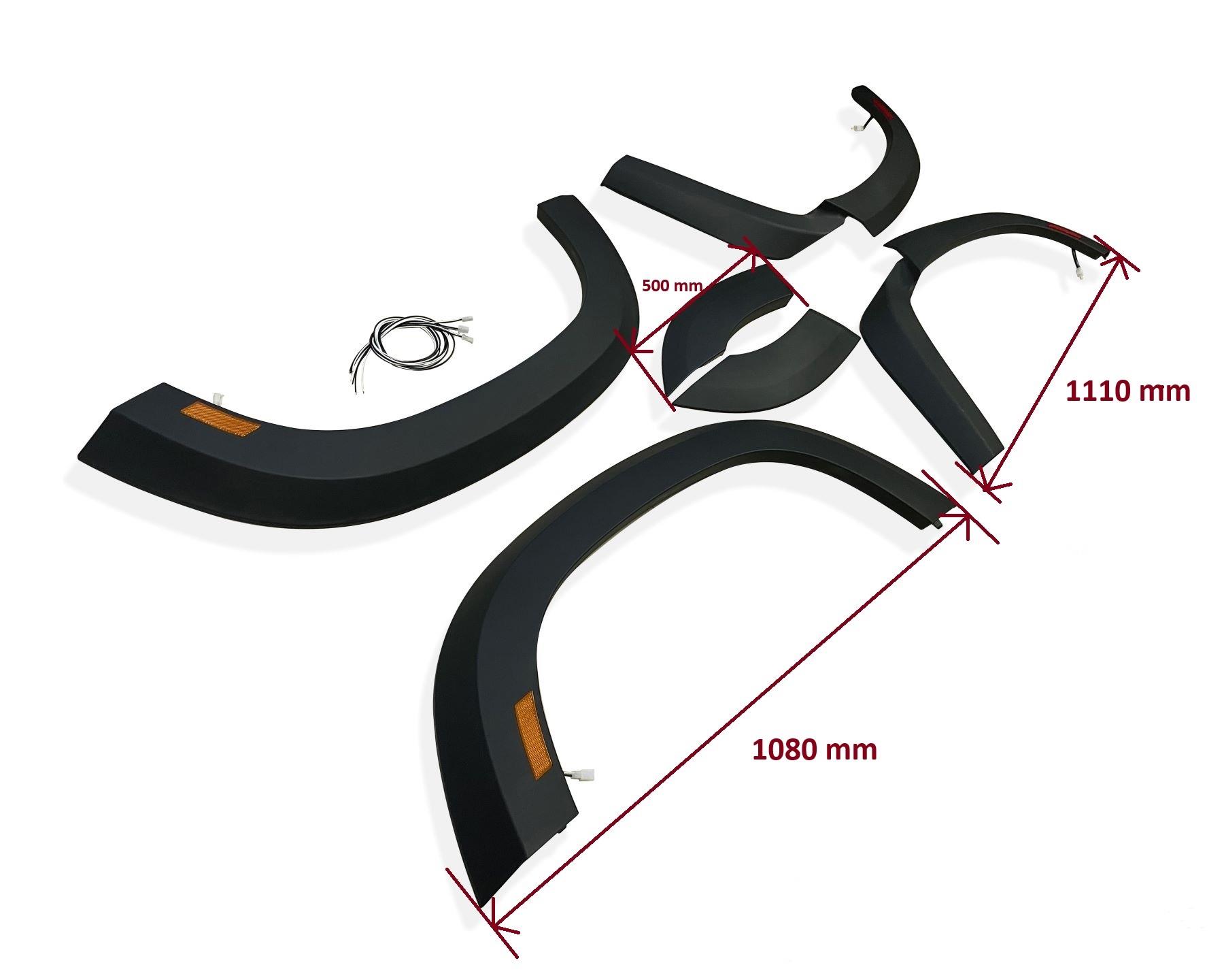 High quality ABS-strengthened plastic materials Fender Flares + LED Lights set of 4 for Land Rover Defender 110 (2020 – present models). These top-of-the-range fender flares will protect and will have your vehicle looking top spec at a fraction of the cost of the genuine items but with the same high quality.