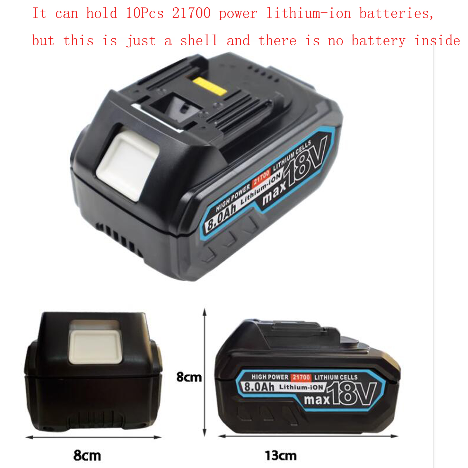 Shell can accommodate 10 * 21700 power lithium-ion batteries, but this is just a shell and there is no battery inside