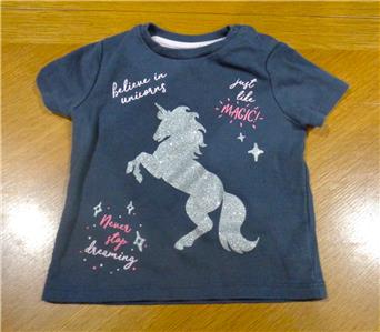 1 - Mini Heroes 18 month gray 'Believe in Unicorns', 'Just like Magic', and 'Never Stop Dreaming' with glittered unicorn short sleeve t-shirt
