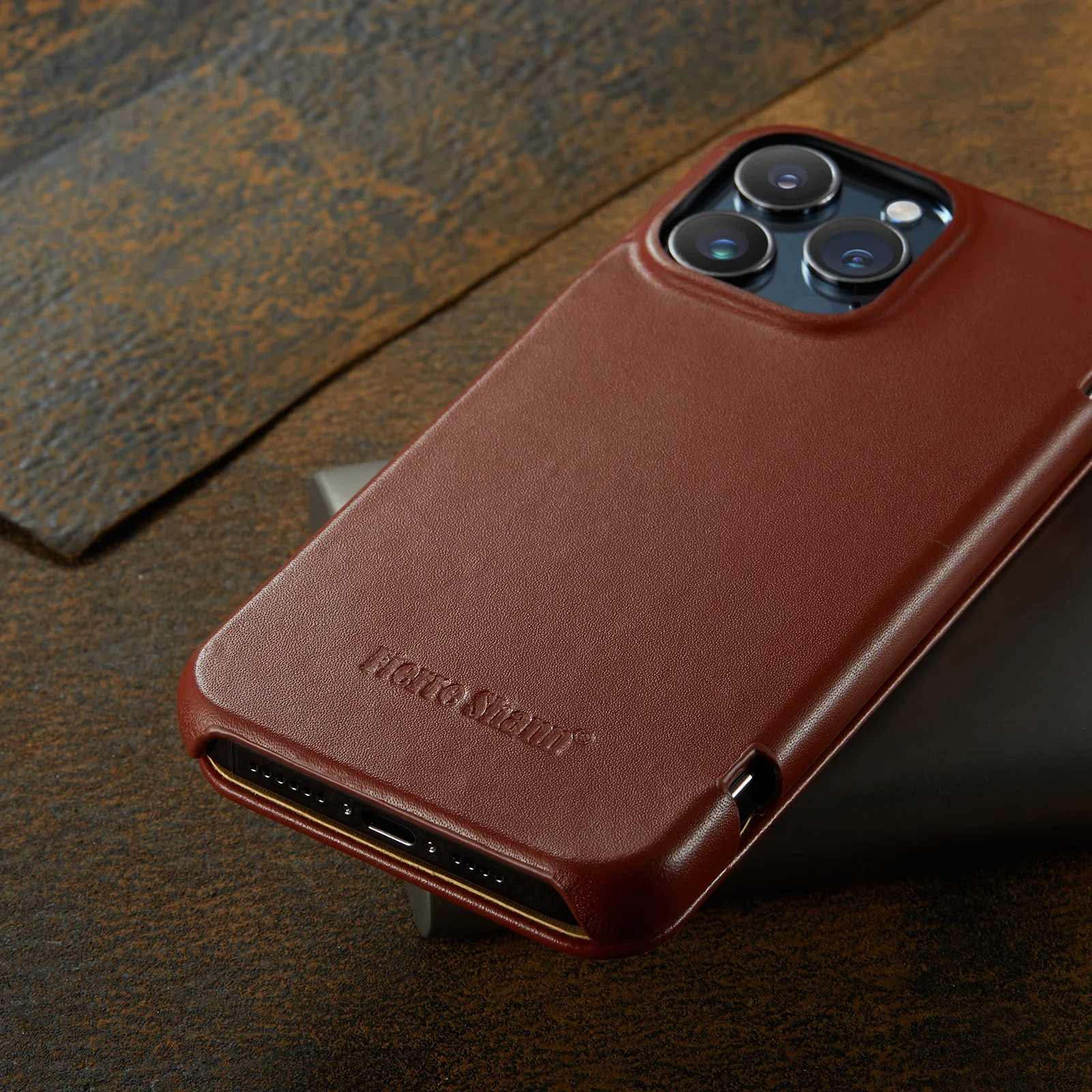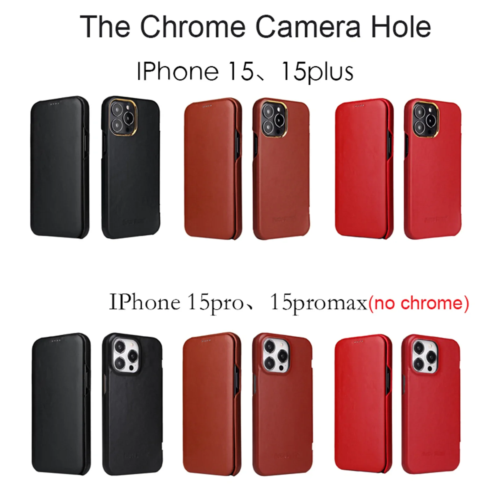Genuine Leather Flip Case Curved Edge Full Cover For iPhone 15 Pro Max 14 13 Pro