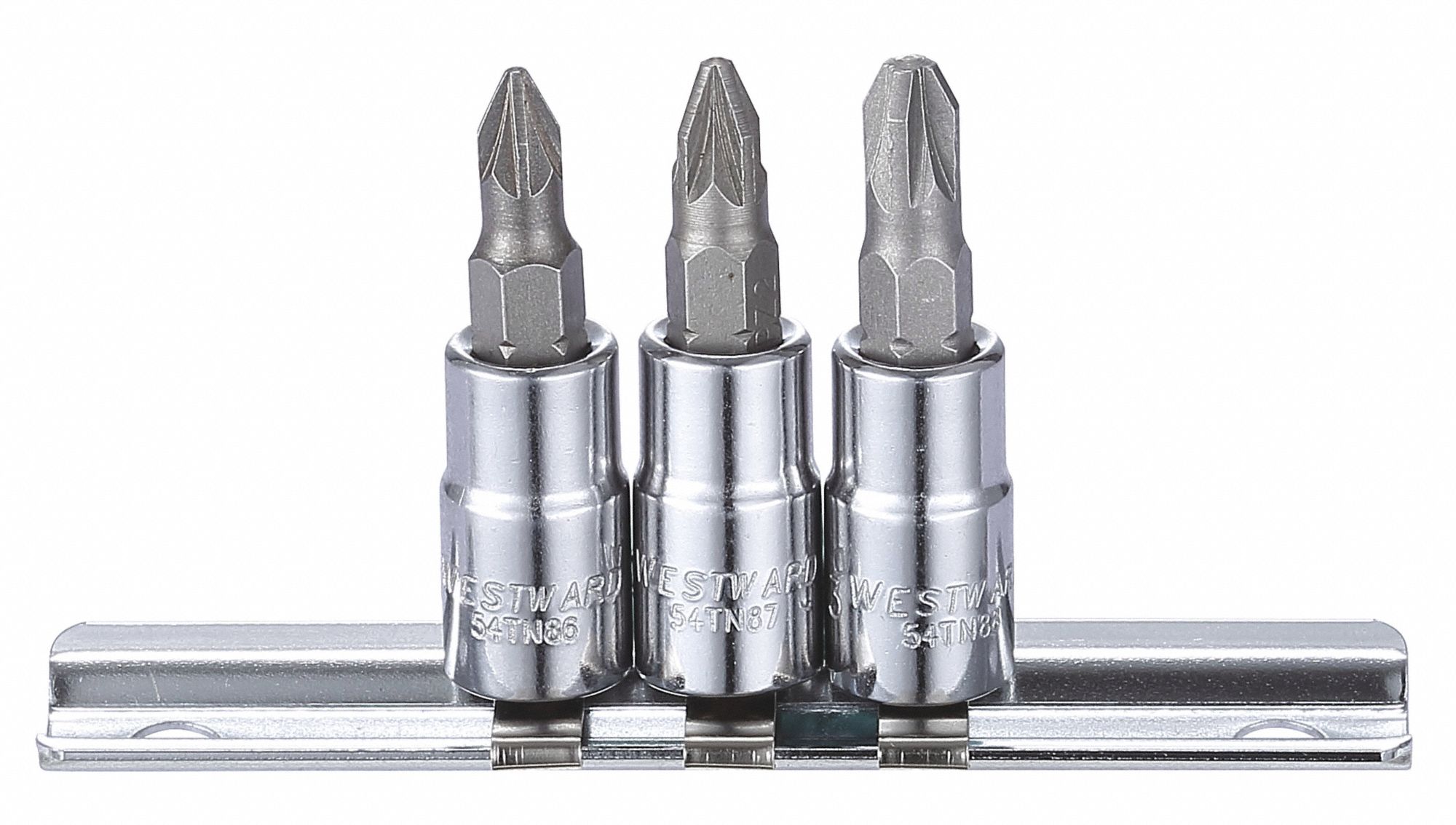 Socket Bit Set, Tip Size #1, #2, #3, Tip Style Pozidriv, Overall Length 1 9/16 in, Drive Size 1/4 in, Number of Pieces 8, Alloy Steel, Chrome, SAE, Insulated No, For Screw Type Pozidriv