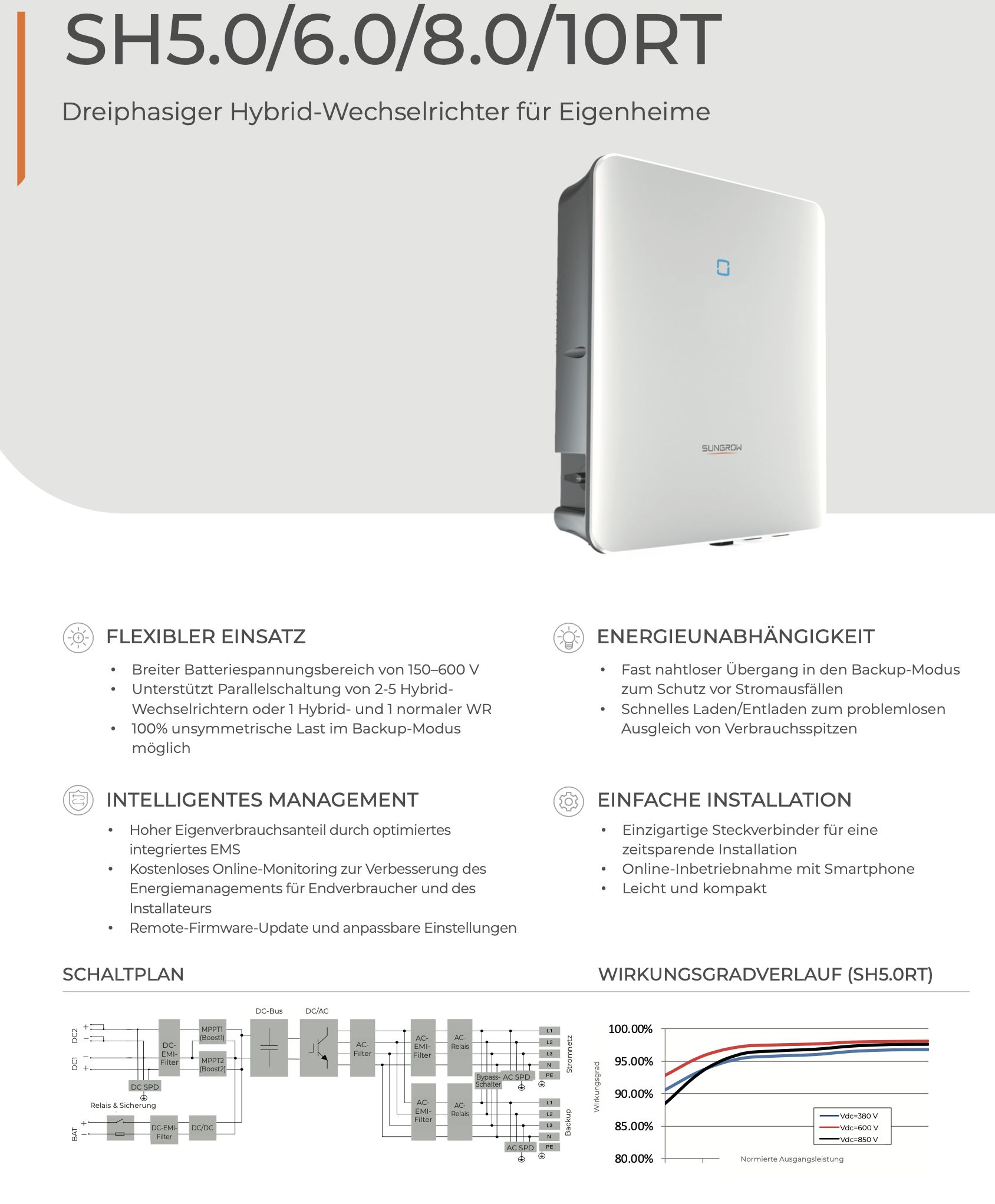 SUNGROW SH6.0RT Hybridwechselrichter 6 kW inkl. SMARTMETER Solar Wechselrichter