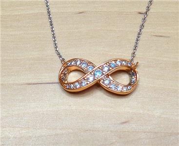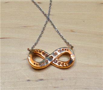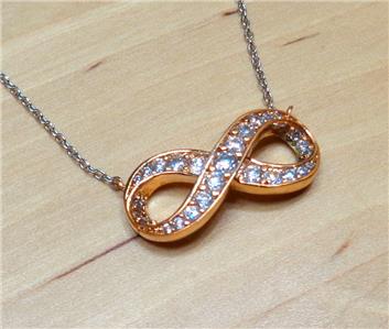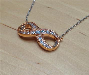 BEACH FASHION ROSE GOLD AND SILVER RHODIUM ETERNITY LOVE SYMBOL PENDANT NECKLACE