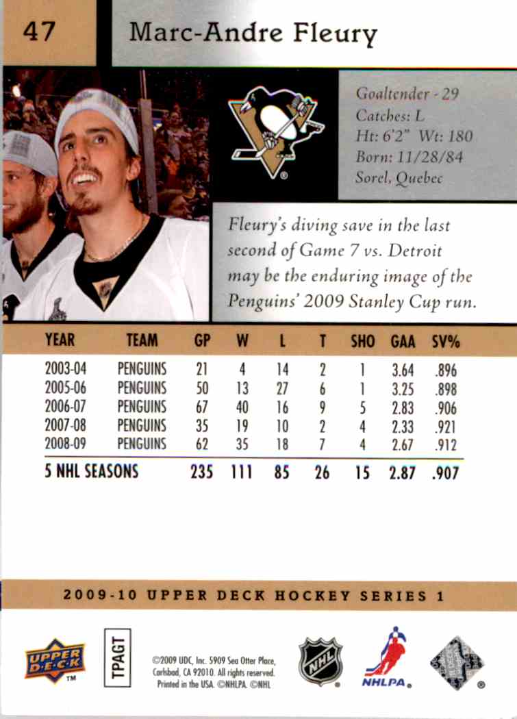 | 2009-10 Upper Deck Marc-Andre Fleury #47 |