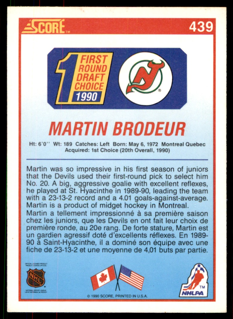 | 1990-91 Score Martin Brodeur RC New Jersey Devils #439 |