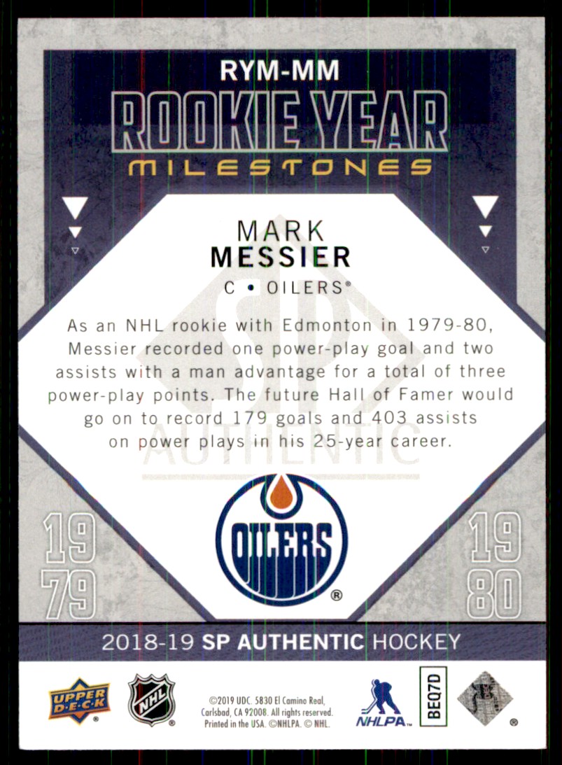 | 2018-19 SP Authentic Rookie Year Milestones Mark Messier Edmonton Oilers #RYM-MM |
