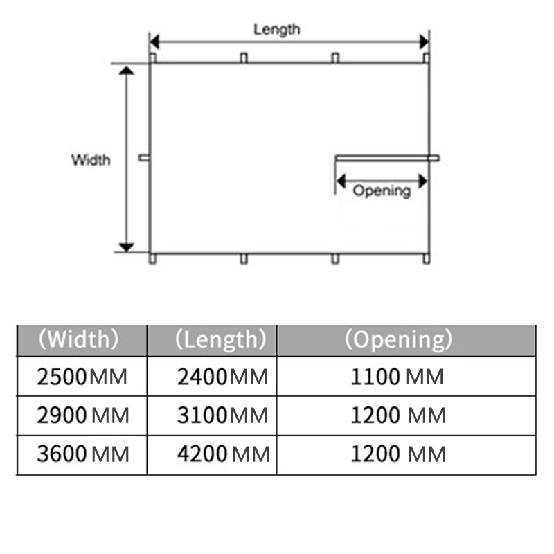 Size:2.5x2.4M,2.9x3.1M,3.6x4.2M