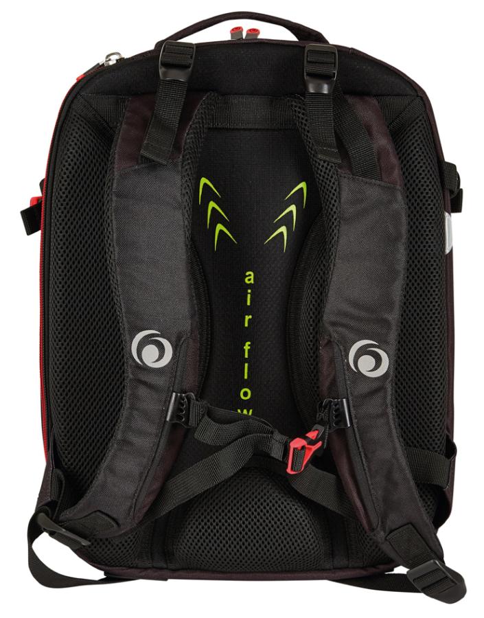 • atmungsaktives, ergonomisch geformtes Rückenpolster