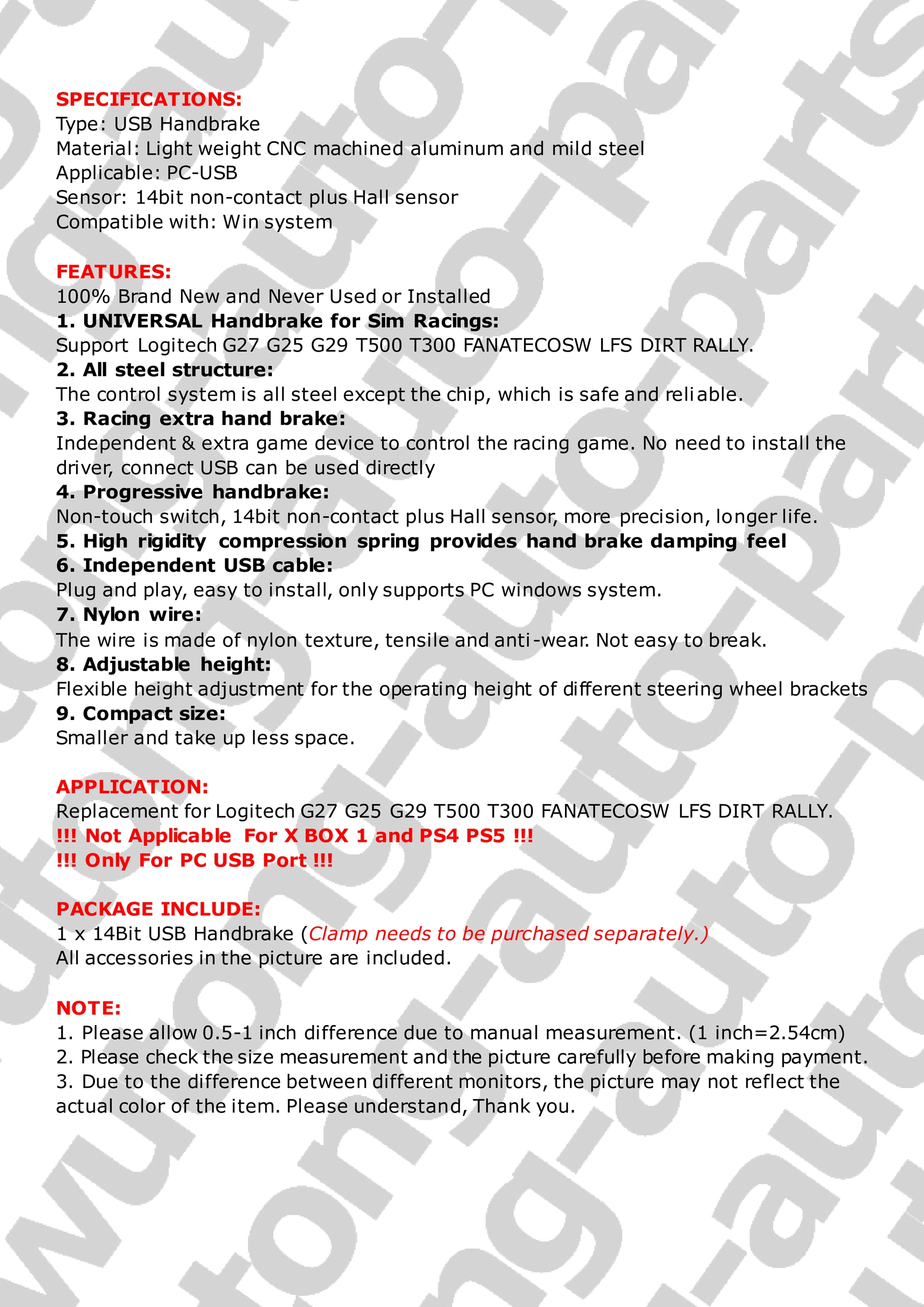 For Racing Games G27/G29 T500 FANATECOSW DIRT RALLY 14Bit PC USB Handbrake SIM