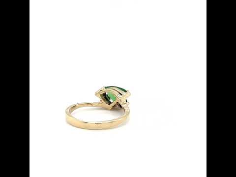 Natural Tsavorite Garnet & Diamond Ring 14K Solid Gold Trillion Ring Green Ring Gemstone Ring Garnet
