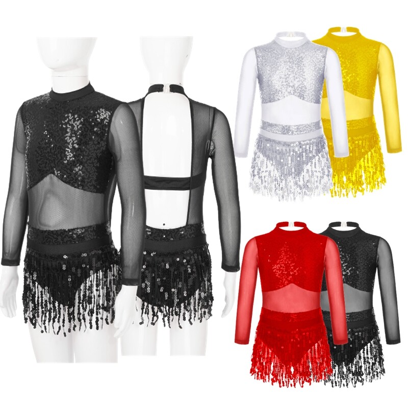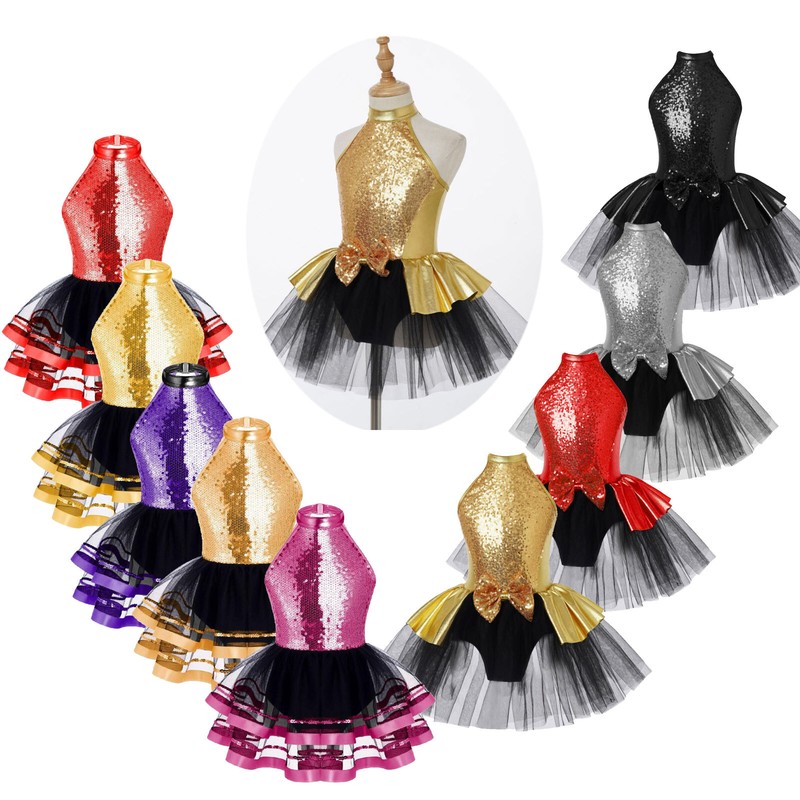 Dance leotard dress is made of polyester and sequins material, hand wash.