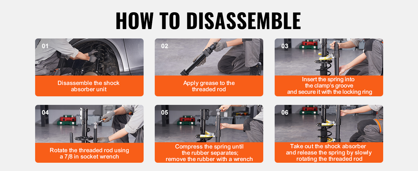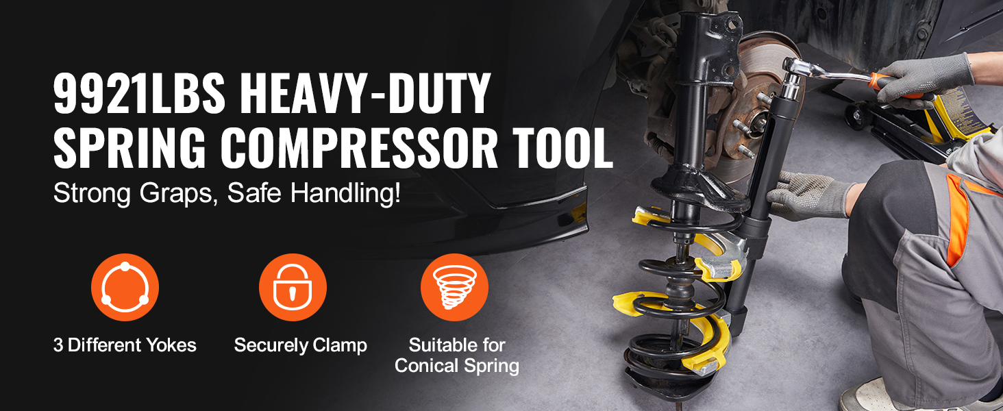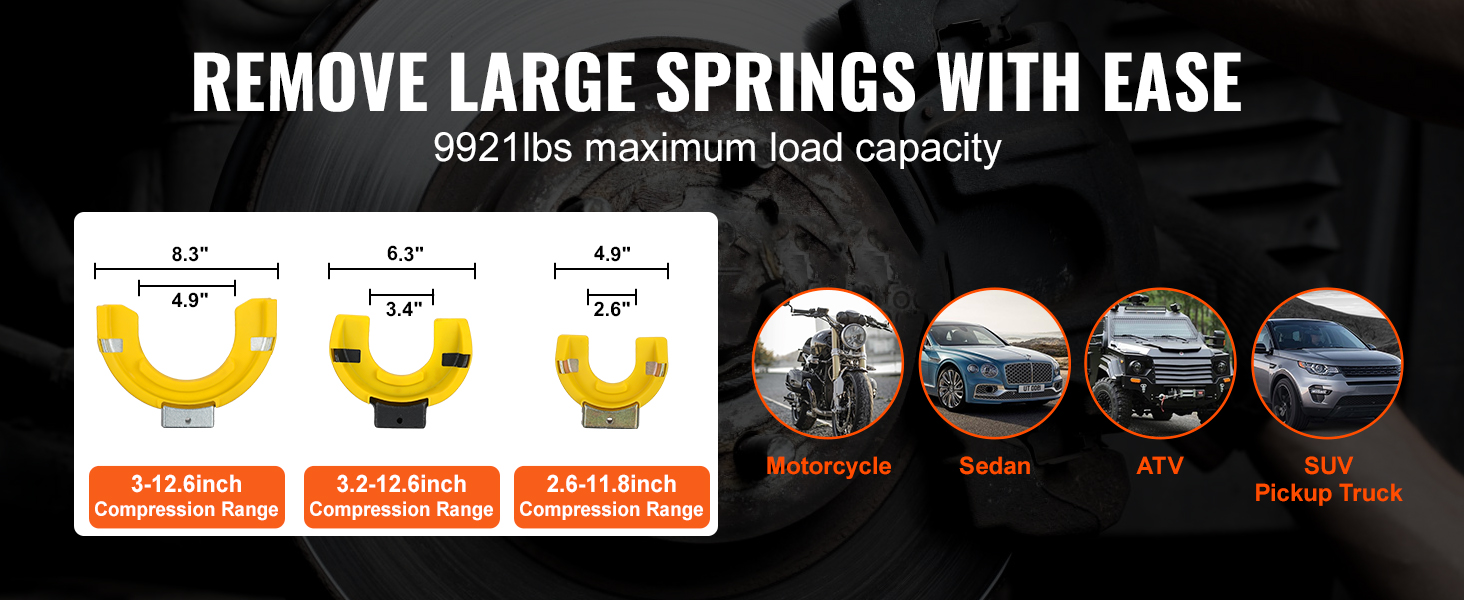 With exceptional load capacity and a wide compressible range, our coils spring compressor effortlessly dismantles springs from motorcycles, cars, pickups, SUVs, and more. Enjoy the convenience of on-vehicle shock absorber spring removal, simplifying replacements and installations.