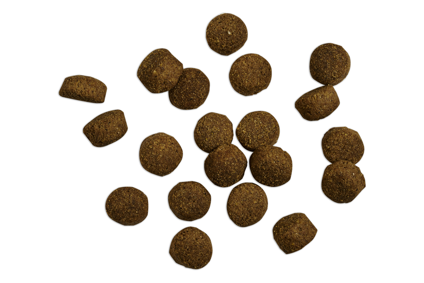 Zusammensetzung: Kartoffelstärke; Geflügelprotein, getrocknet (15 %); Erbsenmehl; Bohnenmehl (Vicia faba); Rinderprotein, getrocknet (8 %); Geflügelfett; Kichererbsen; Rübentrockenschnitzel, entzuckert; Bierhefe, inaktiviert, getrocknet (2,5 %); Johannisbrotschrot, getrocknet (2,5 %); Fischmehl aus Meeresfischen; Lachsöl (1,5 %); Dicalciumphosphat; Leinsaat (1 %); Geflügelleber, hydrolysiert; Natriumchlorid; Kaliumchlorid; Kräuter, getrocknet (Brennnesselblätter, Enzianwurzel, Tausendgüldenkraut, Kamille, Fenchel, Kümmel, Mistelkraut, Schafgarbenkraut, Brombeerblätter) (0,2 %); Yucca schidigera
