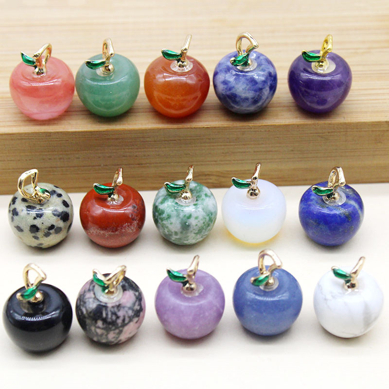 100pcs 14mm Apple Statue Pendant Natural Crystal Stone Carved Necklace Jewelry