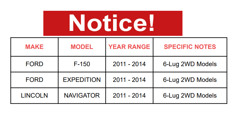 FORD EXPEDITION 2011 - 2014 6-Lug 2WD Models
