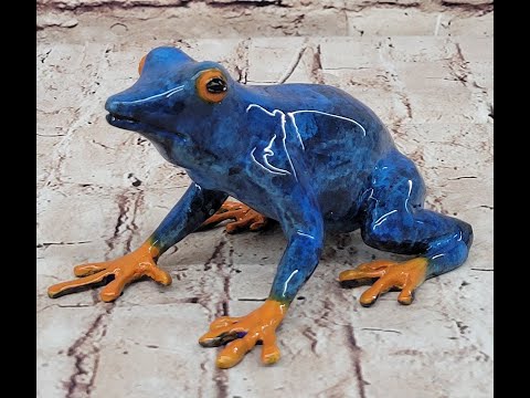 The Frogman Frog Bronze Sculpture is an exquisite piece of art that stands as a testament to fine craftsmanship and artistic expression. This collectible features a beautifully detailed frog, sculpted with meticulous attention to anatomical accuracy and character. The frog is captured in a dynamic, lifelike pose that exudes both whimsy and elegance, making it a captivating addition to any home or office. Crafted from high-quality bronze, the sculpture boasts a rich, Royal blue patina, complemented by vibrant orange accents that highlight the frog's form and bring a burst of color to the piece.