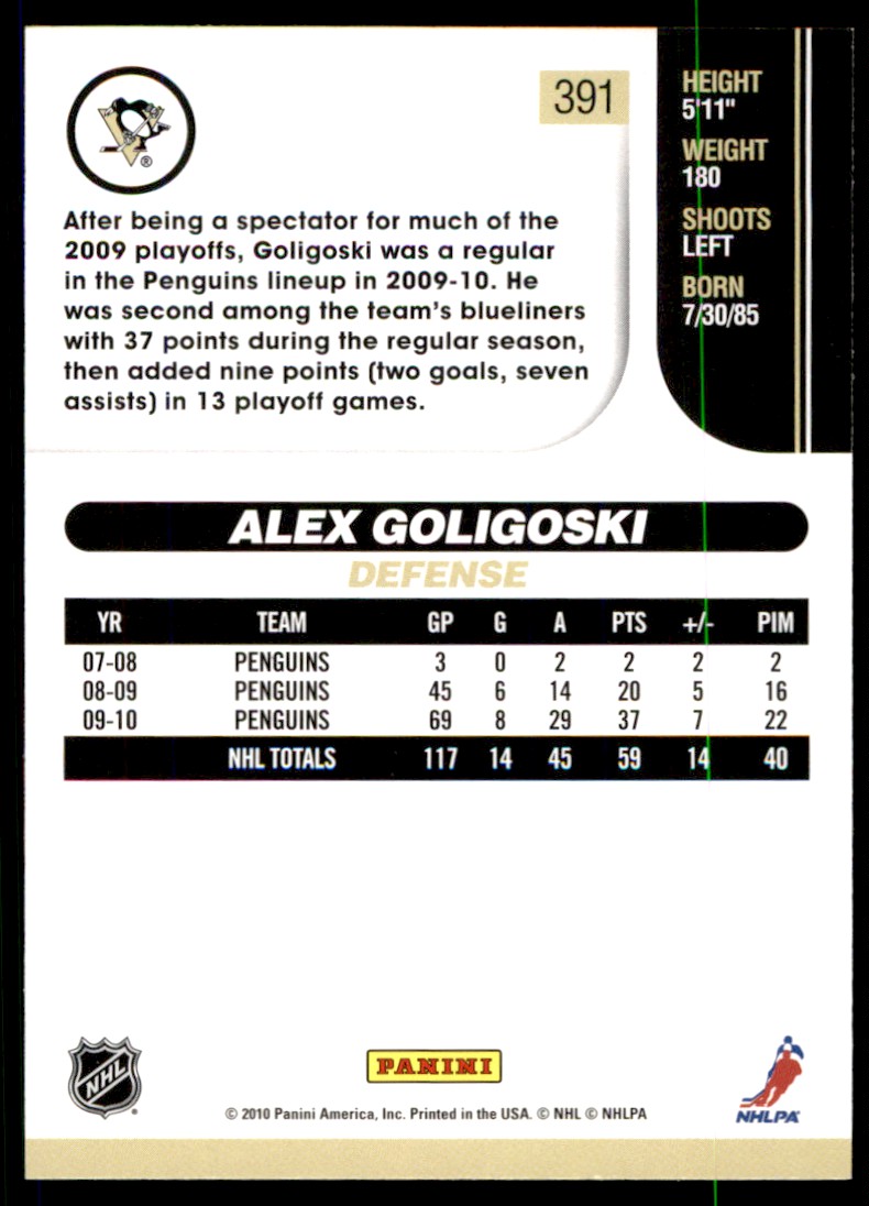 | 2010-11 Score Alex Goligoski Pittsburgh Penguins #391 |