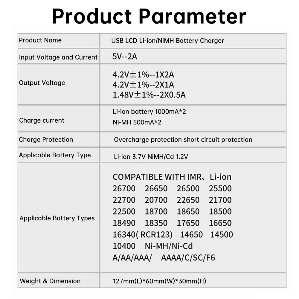 5. High-precision multi-functional liquid crystal lithium-ion/nickel-metal hydride battery charger, with a wide range of applications.
