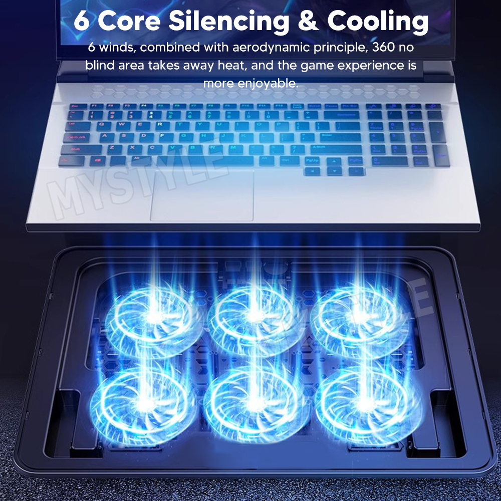 - 6 high-speed fans, all with 2400 rotor copper coil motor, bring strong wind speed to speed up the flow, let your laptop principle high temperature.