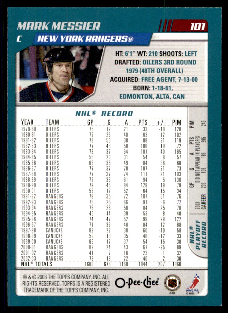 | 2003-04 O-Pee-Chee Mark Messier New York Rangers #101 |