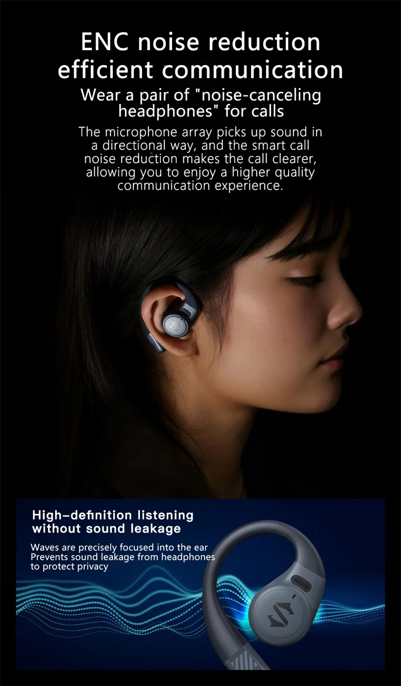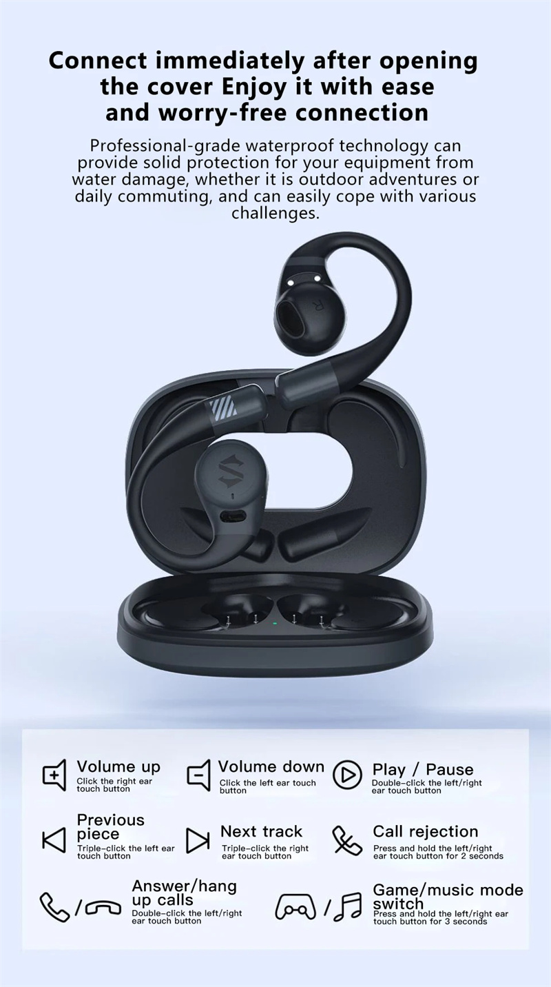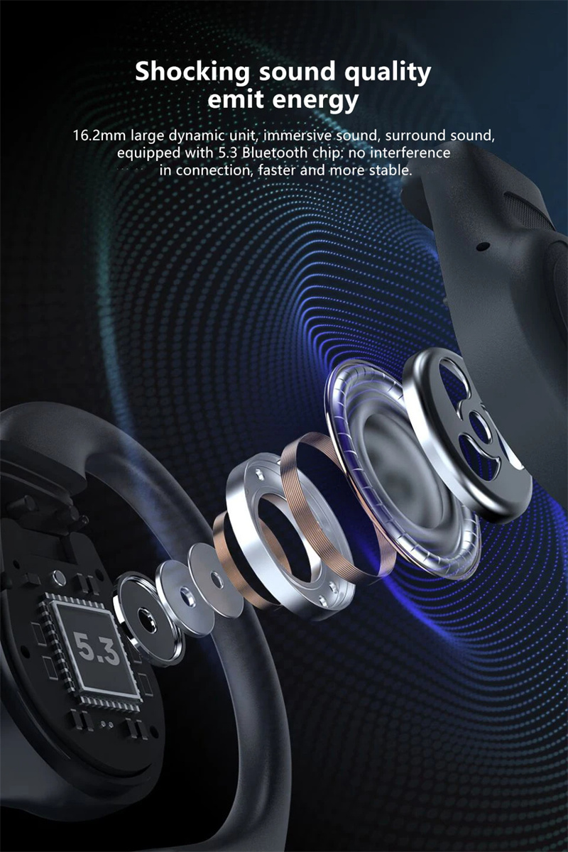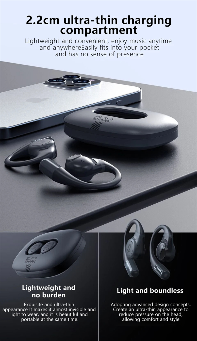 Features: 1. 16.2mm Large Unit: Featuring a formidable 16.2mm large dynamic driver unit, the Blackshank BS-T17 OWS Gaming Headset offers an immersive surround sound experience. Coupled with a bluetooth 5.3 chipset, it ensures faster and more stable connectivity free from interference. 2. ENC Noise Cancelling: Microphone array technology intelligently picks up directional sound to provide effective ENC (Environmental Noise Cancellation). This ensures clearer calls and a higher-quality communication experience. 3. Low Game Delay: With an impressive 0.06s low latency, the Blackshank BS-T17 is perfect for gaming, ensuring your audio keeps up with the action for a seamless experience. 4. Built-in Exclusive Voice Pack: The headset is equipped with a Blackshank-exclusive voice pack, offering multi-scenario voice reminders. Effortlessly switch between gaming and music modes while staying informed about your device status. 5. E-sports Earhooks: Designed with e-sports earhooks for added comfort and stability during intense gaming sessions, ensuring your headset stays securely in place.