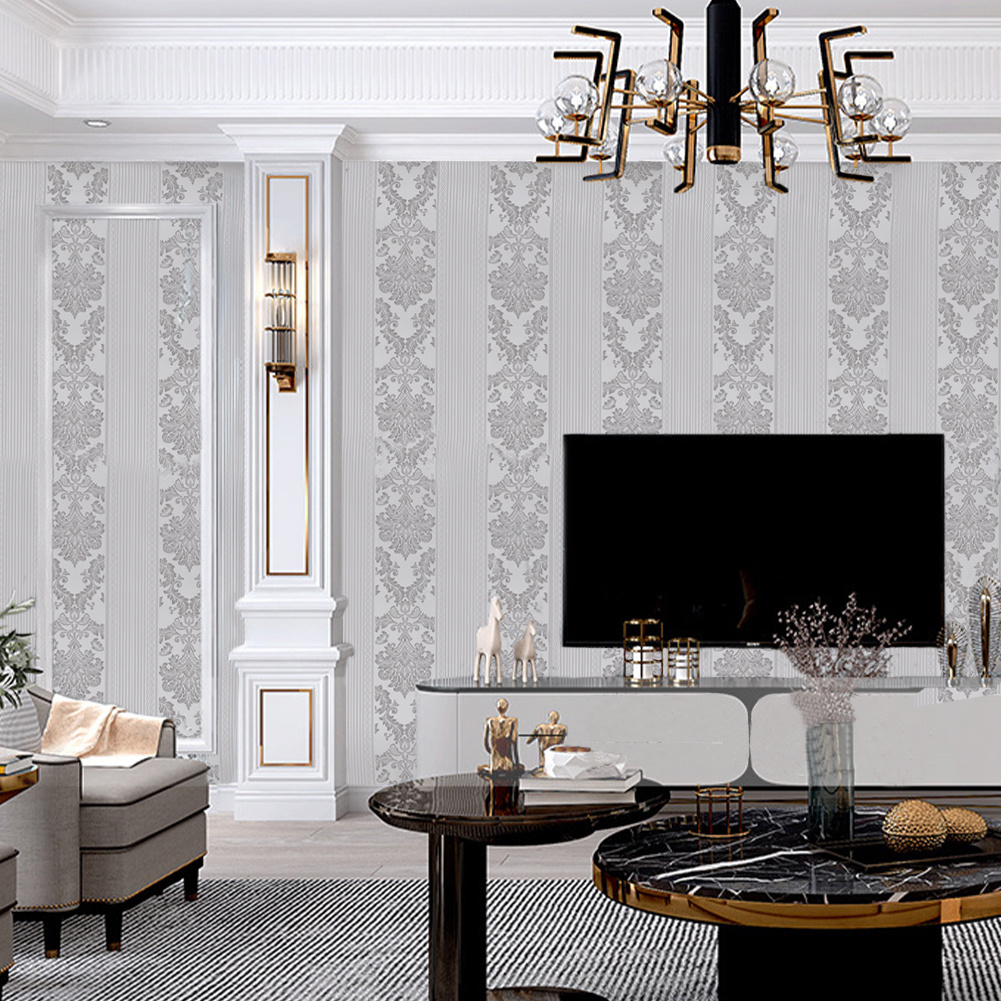 3D Damask Sliver Wave Wallpaper Roll Home Decor Silver Grey Wall Paper Rolls