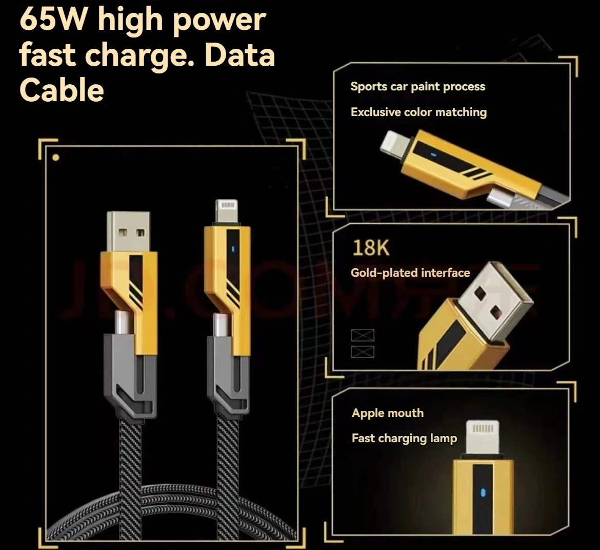 4 In 1 65W USB Type C Cable Fast Charging For Samsung Xiaomi Huawei Oneplus USB C To Lighting Cable For iPhone 14 13 12 Pro Max
