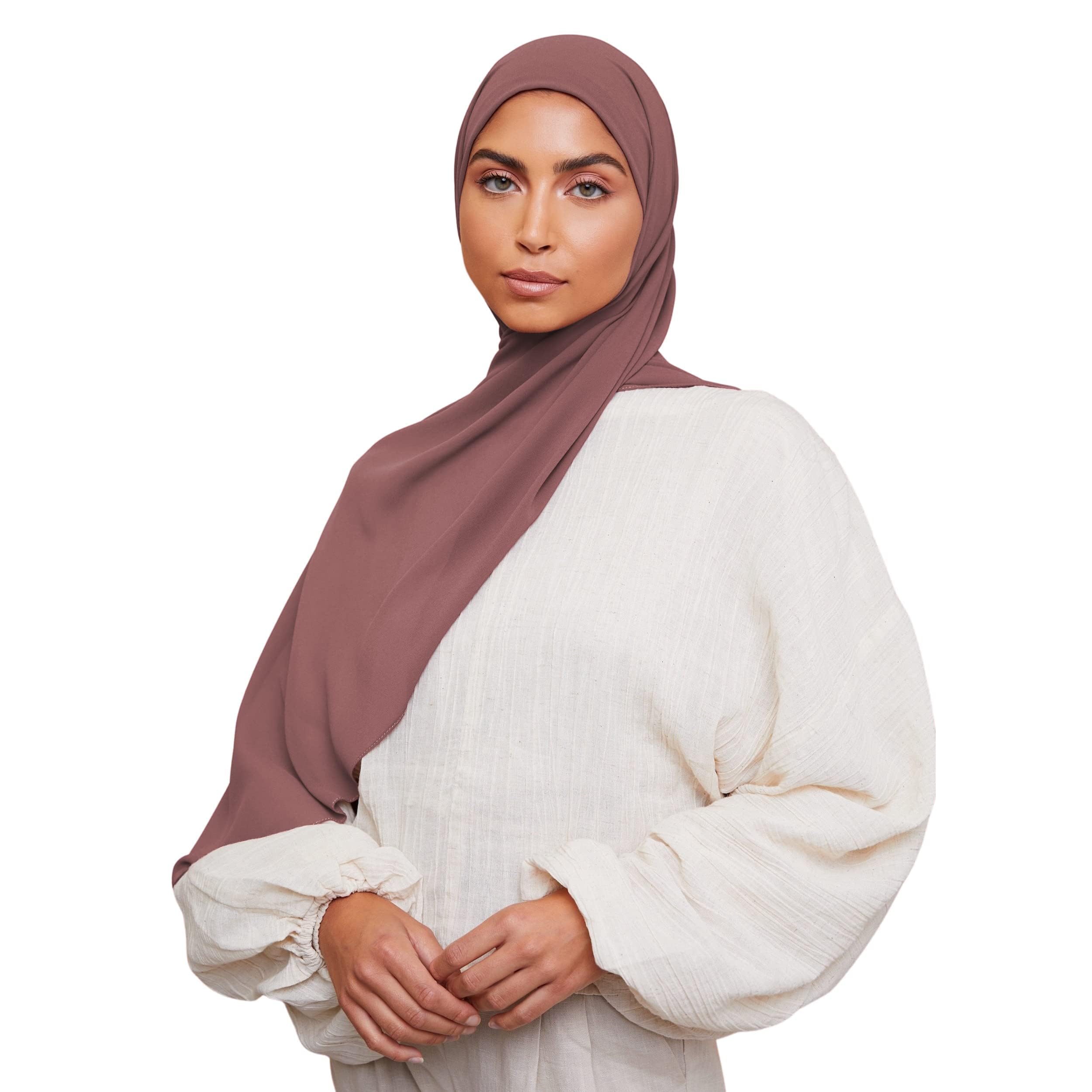This is the perfect Earth Grey Chiffon Hijab and is a must have for every wardrobe. It is extremely comfortable and the perfect thickness. We take into account that coverage is extremely important and have worked very hard to find a chiffon fabric that is very sheer. We understand the less sheer, the ! At the same time it is important to find the right balance and ensure the fabric is thin and flowy. Wear it to school, work, a day out or an evening out. Fabric Description and Care - 100% Polyester Chiffon - 67" x 25" (170 cm x 60 cm) - Hand wash / dry clean Shape: Long rectangle Thickness: Light-Medium Weight: Medium Texture: Smooth Visibility: Slightly sheer, opaque when layered very prone to creasing Wearability: Somewhat slippery (cotton under scarf is recommended)