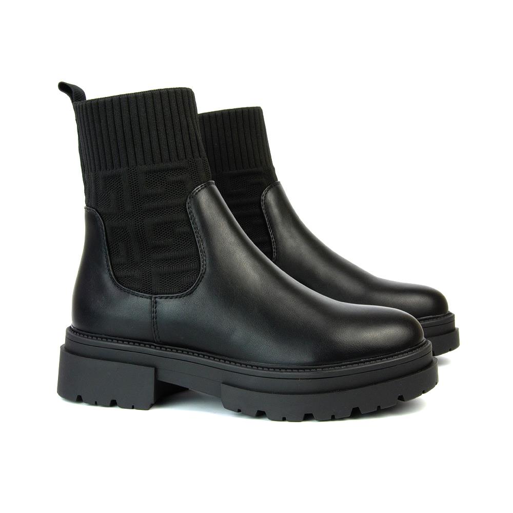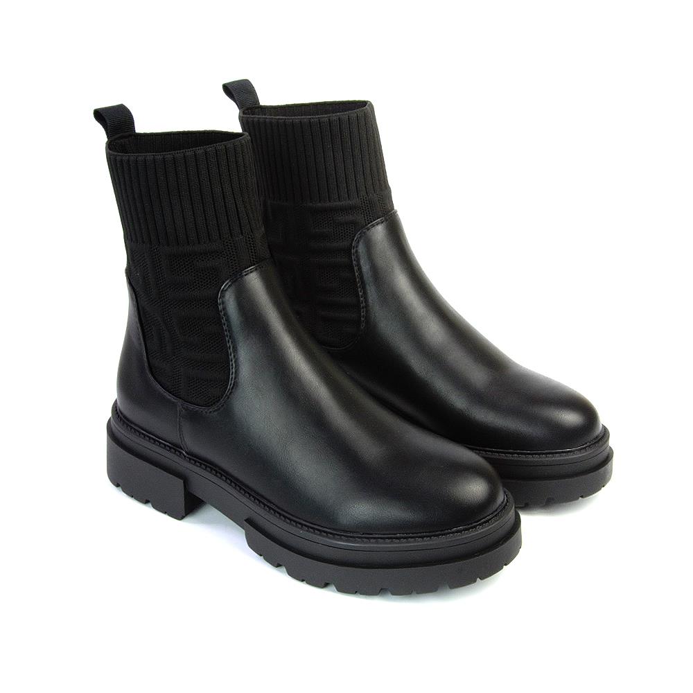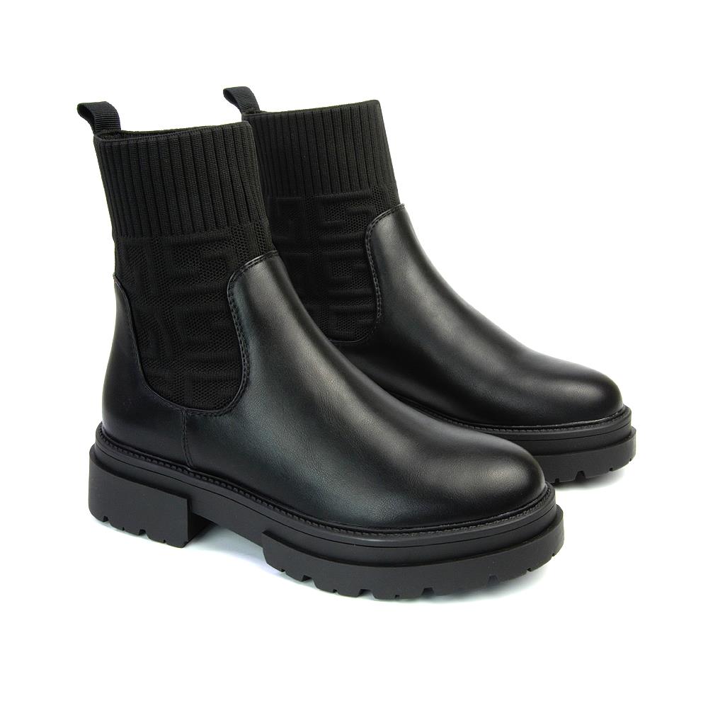 Womens Sock Boots Ladies Chunky Sole Chelsea Black Ankle Booties Size 3-8