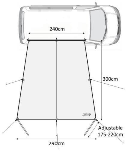 - Allows the van side door to stay open and an outside sheltered seating area in rainy conditions