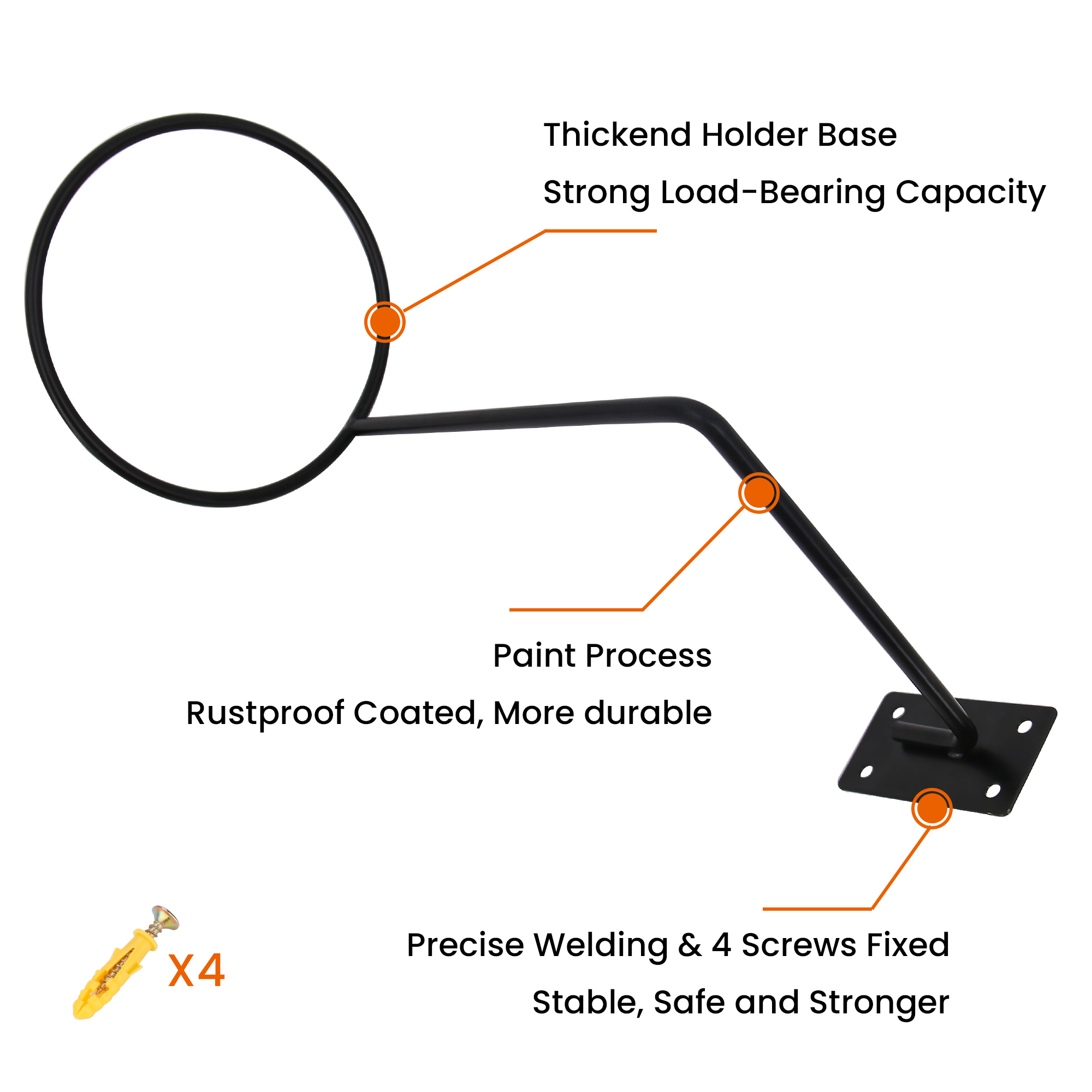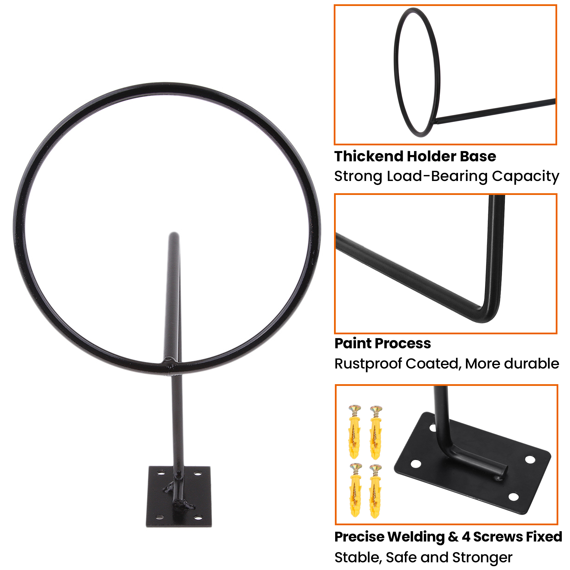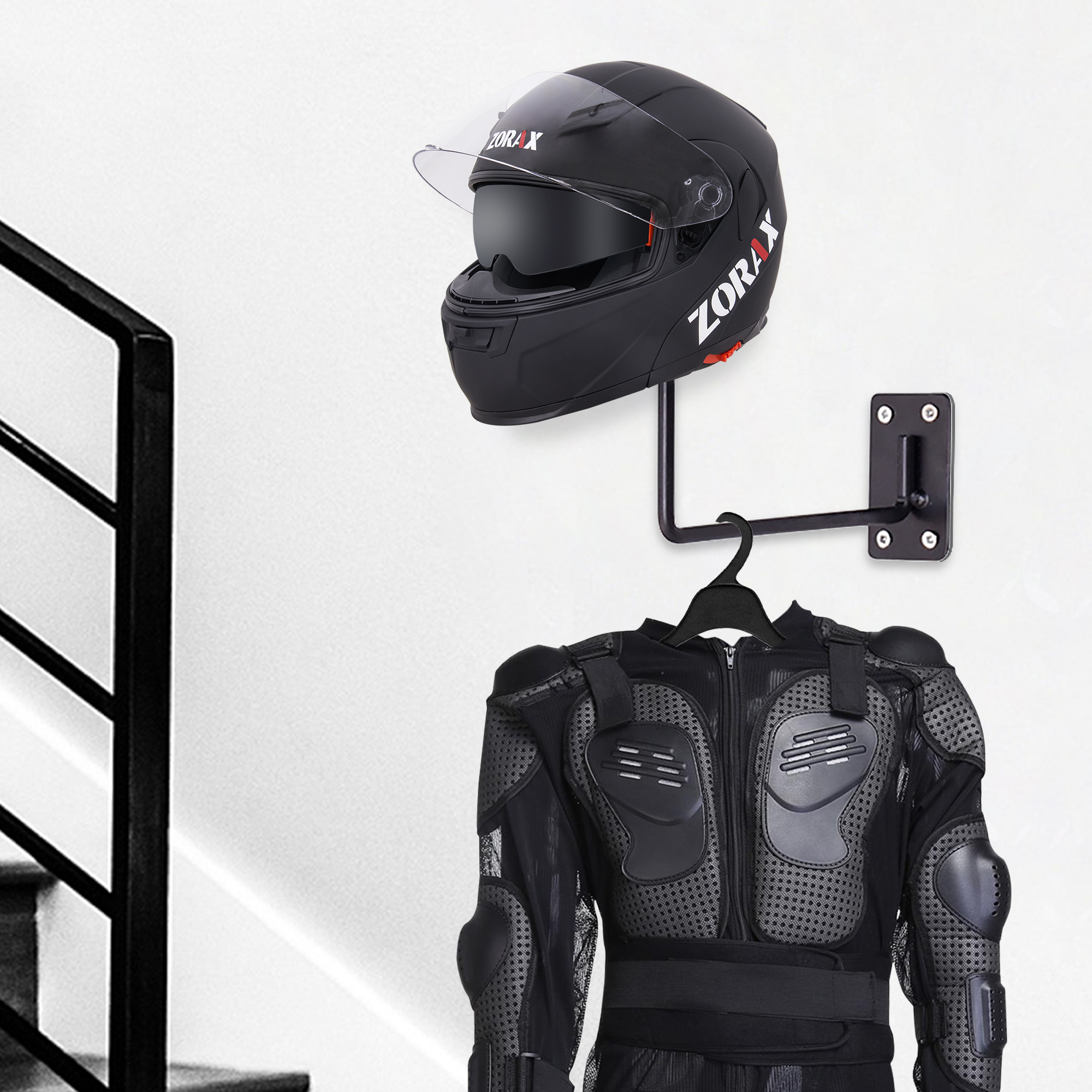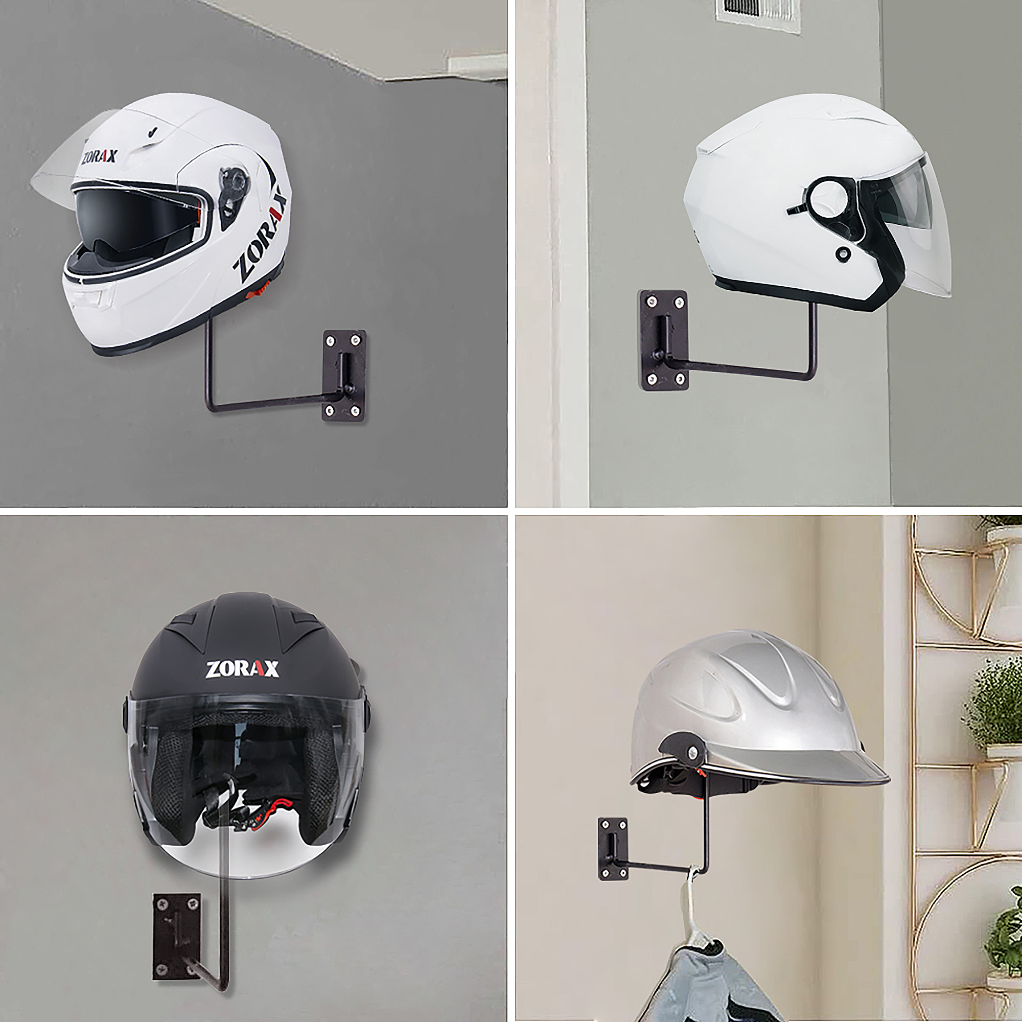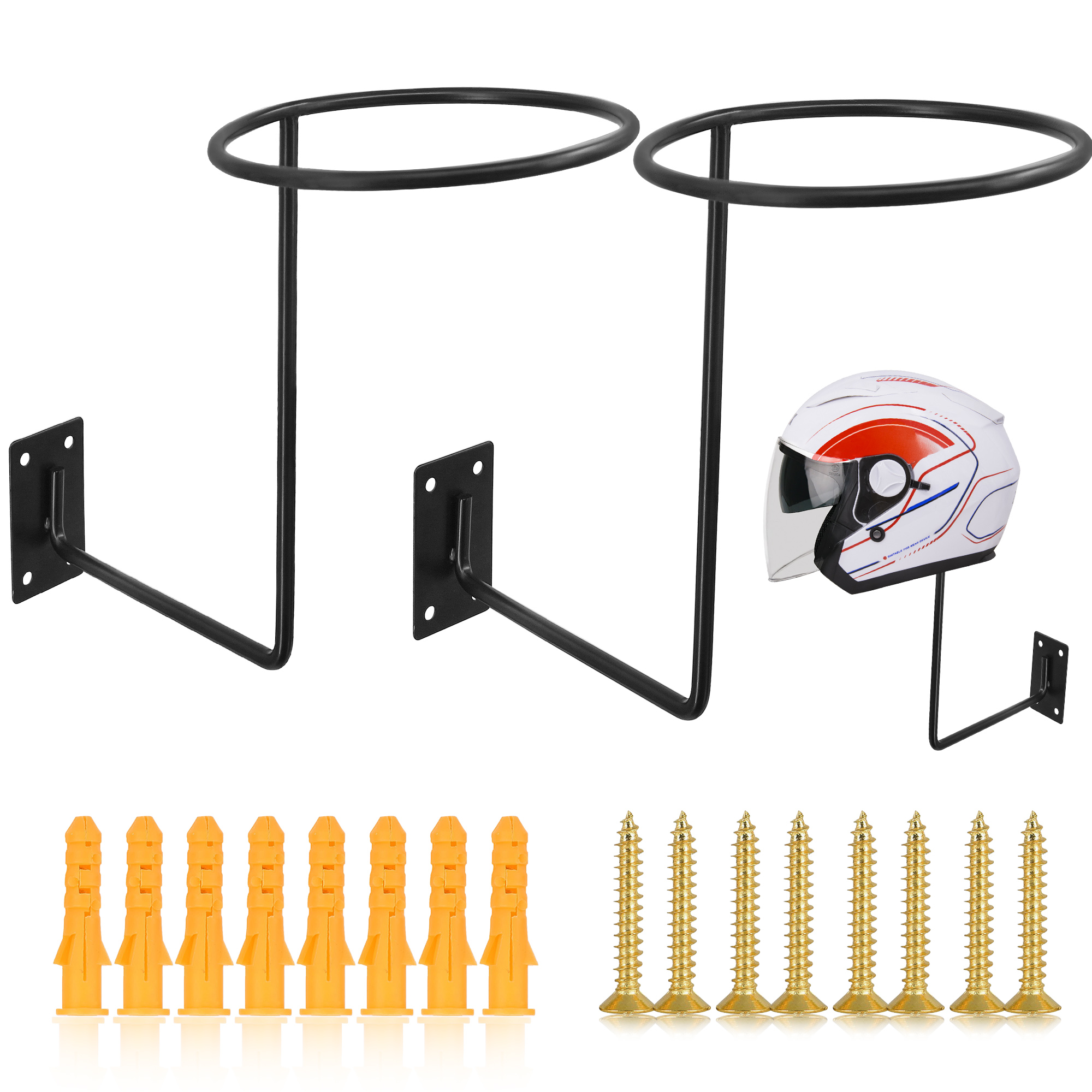 - The black helmet holders are constructed with metal material, sturdy and durable, load-bearing to well hold your motorcycle helmets and even clothes; The welded points have no rough edges or burrs.
