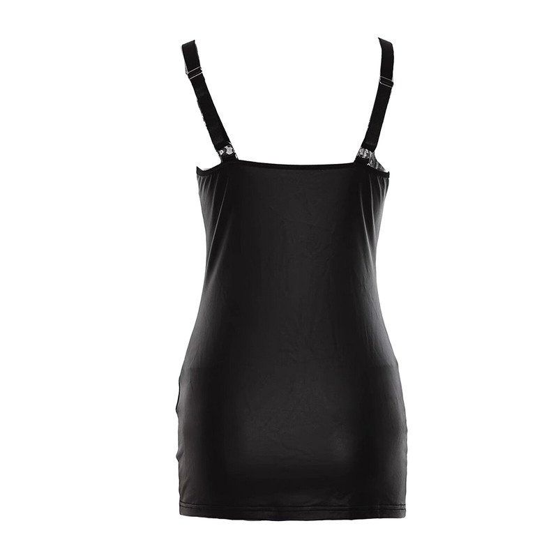 Dress has a sexy wet look, decorates with metal elements to bring a stylish punk gothic style. You would be the centerpiece at the party.