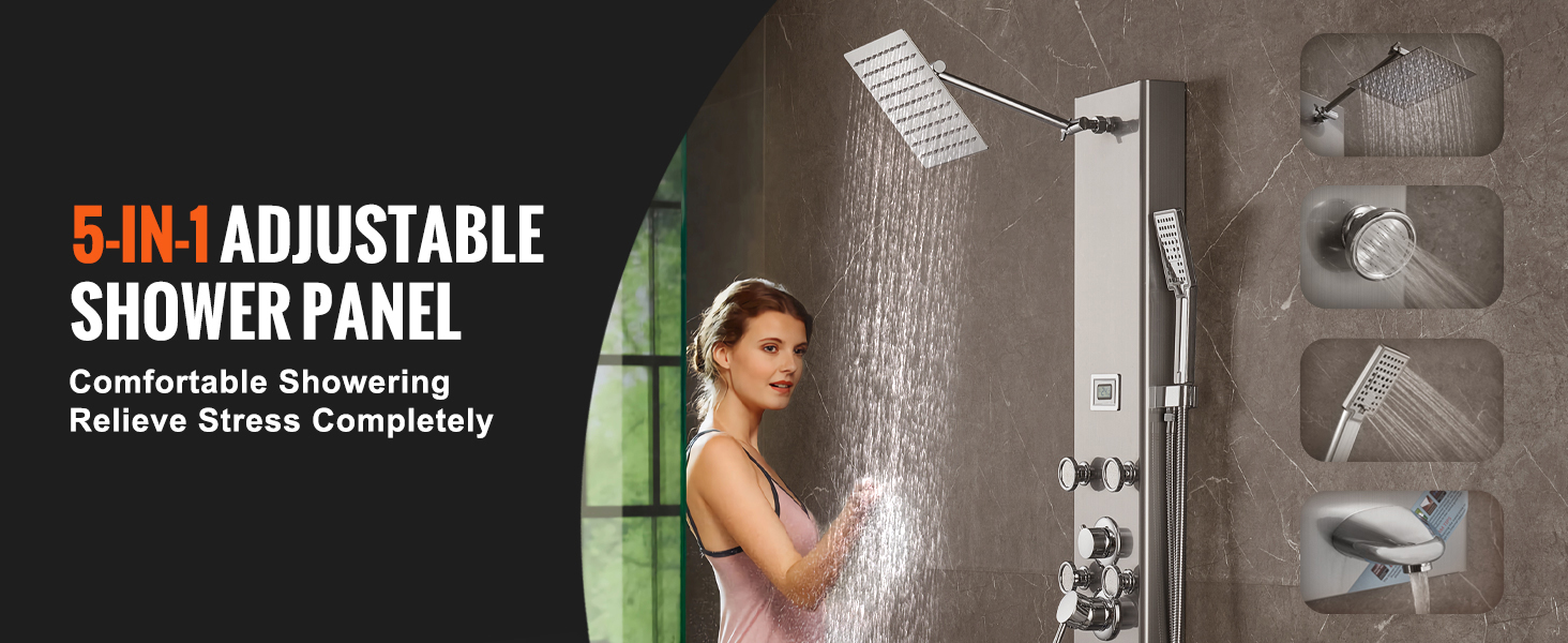 Constructed with a thickened 304 stainless steel panel for durability and hygiene, our shower panel resists corrosion and is easy to clean. The brass water mixing valve and PVC double explosion-proof pipe, along with a 304 stainless steel braided nozzle, ensure a robust and leak-proof system.