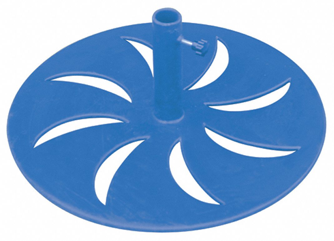 Umbrella Base, Overall Diameter 24 in, Includes Wheels No Wheels, Stem Height 10 in, Color Blue, Material Steel, Maximum Weight 23.76 lb, For Pole Diameter 1 1/2 in, Features Will Not Rust or Mar, UV Resistant, Finish Thermoplastic Coating, Includes Thumb Screw, Ballast Required No
