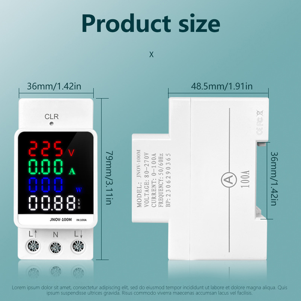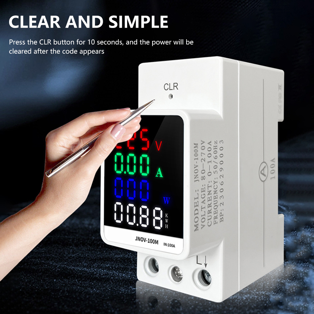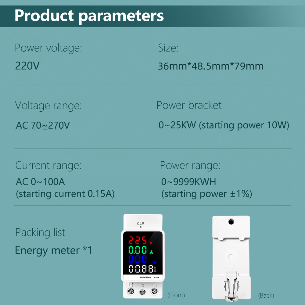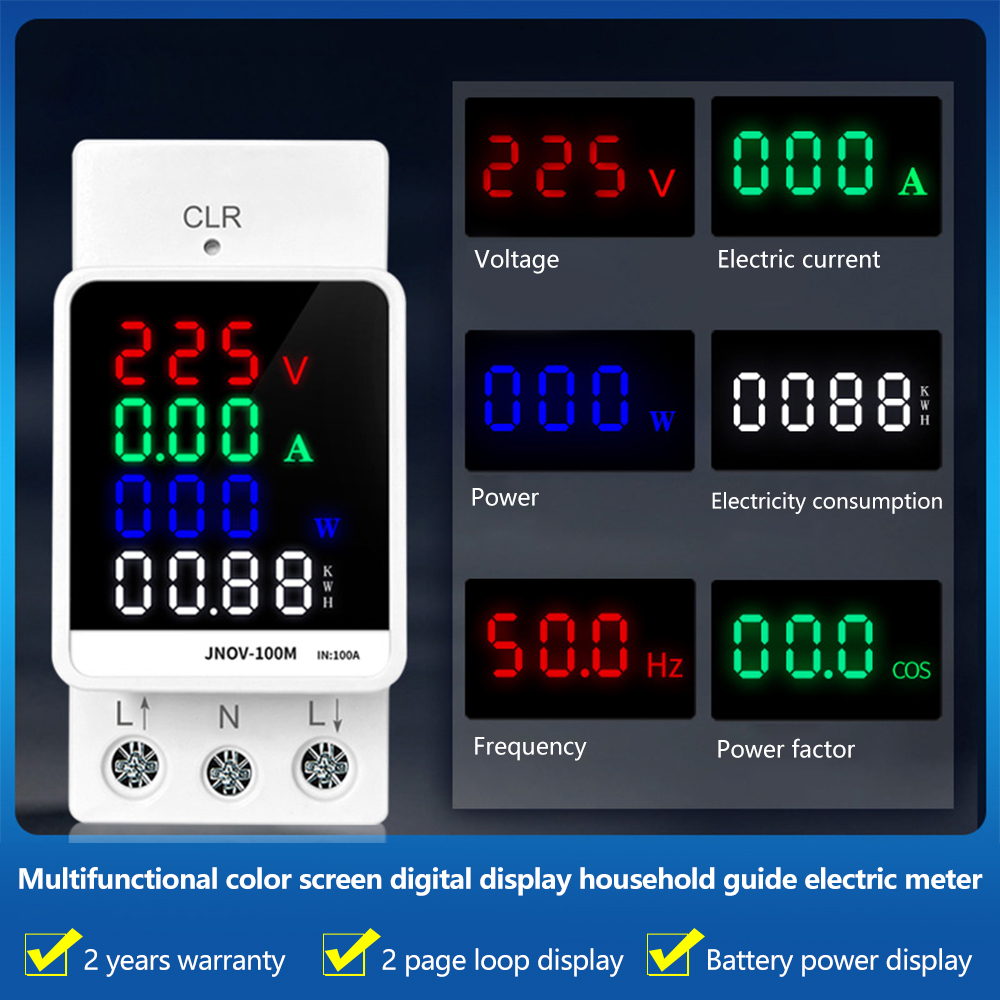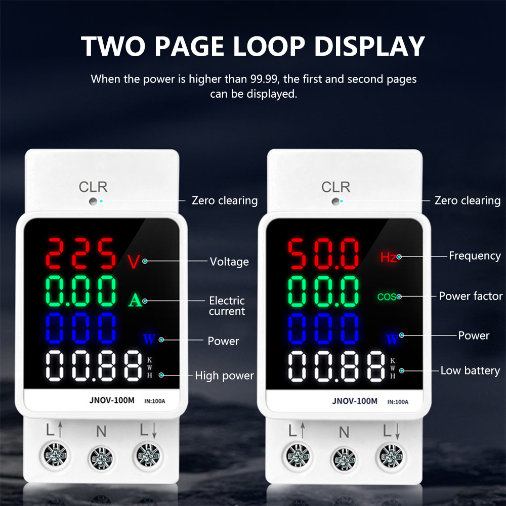 Product Features: 1.LED digital display rail smart meter, real-time display of voltage, current, power, kWh, frequency, to achieve electricity transparency. 2. Compact size, 2P switch size, 35mm standard rail mounting, simple operation. 3. With power failure memory function, power failure does not clear zero, accidental power failure do not have to worry about the value is wrong. 4. With power zero function, long press CLR key for 10 seconds, after the code appears, the power is zero. 5. Two-page interface cycle display: when the power is higher than 99.99, the first page and the second page can be displayed. 6. Wide range of applications: suitable for rental housing, office buildings, lodging, household, electrical equipment power measurement, etc.