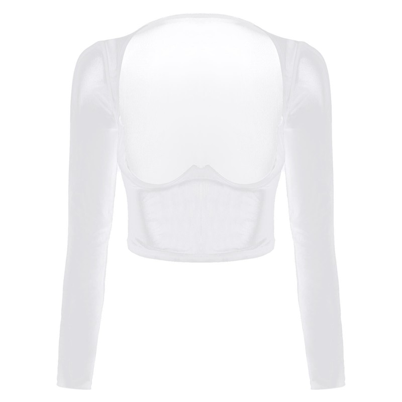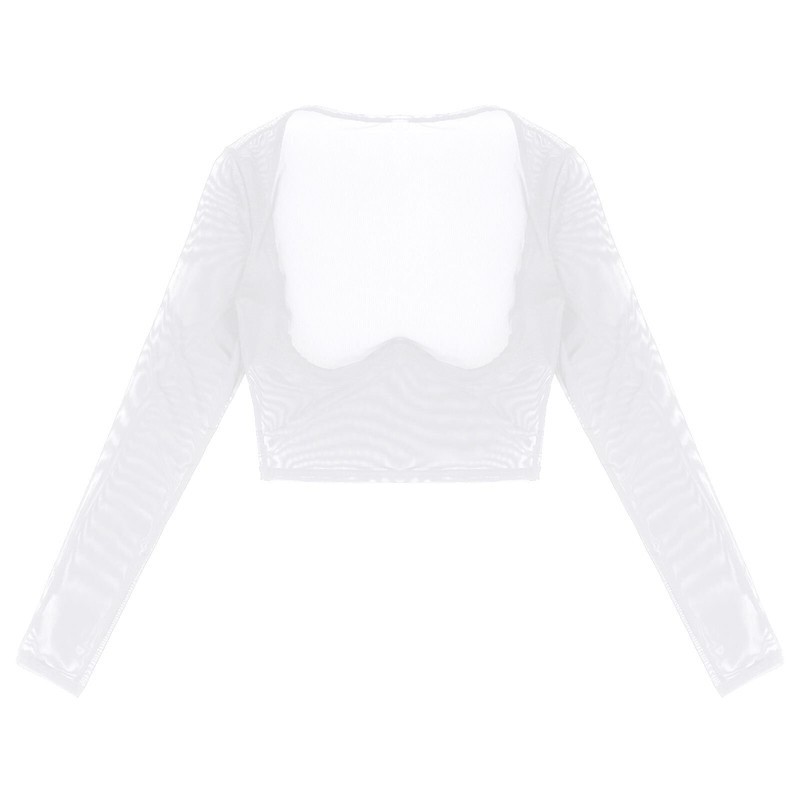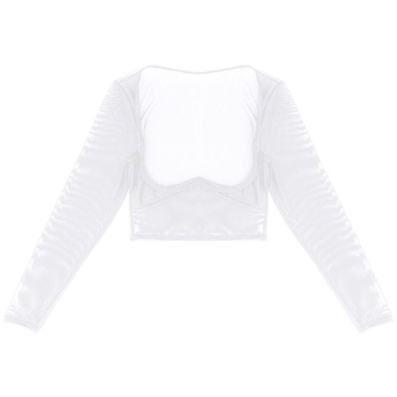 Women See-through Mesh Underwire Crop Top Nightwear Long Sleeve Open Front Sheer T-shirt Tops.