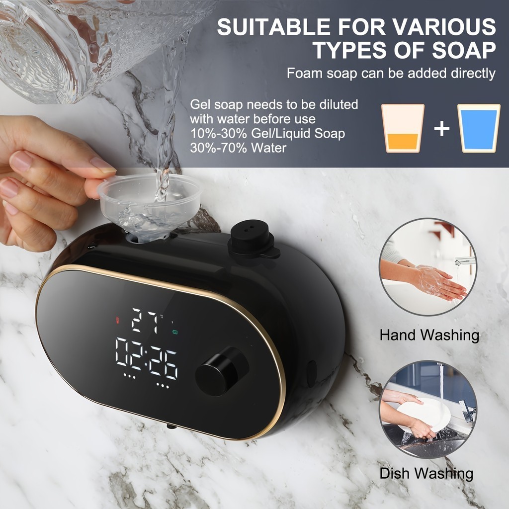 [LARGE CAPACITY FOR FREQUENT USE] Large capacity design reduces the inconvenience that you need to add liquid repeatedly. When the liquid is lower than 10%, there will be a low liquid reminder on the screen. Foaming soap can be poured directly into it. Ordinary gel/liquid soap needs to be diluted with 3 times of water before pouring in. (Not suitable for starlight hand soap with granules.Can't use a soap with particles, such as starlight hand soap, fluorescent hand soap, etc., particles can cause blockage.)