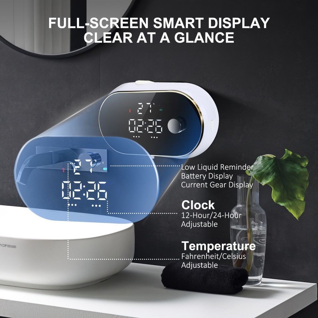 [UPGRADE TO A SMART EXPERIENCE] Our automatic refillable soap dispenser features an advanced motion sensor, fast dispensing gel experience. The screen shows clear time, temperature, liquid quantity reminder, power prompts, gears.