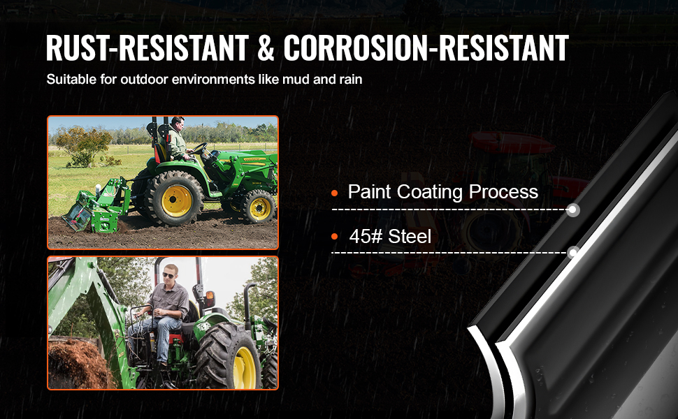 The top link made entirely of 45# steel, it is robust and heavy-duty, resistant to deformation. With added paint coating on the surface, it is corrosion-resistant and rust-resistant, ensuring durability even in harsh environments such as muddy terrain, rainy days, and outdoor high temperatures.