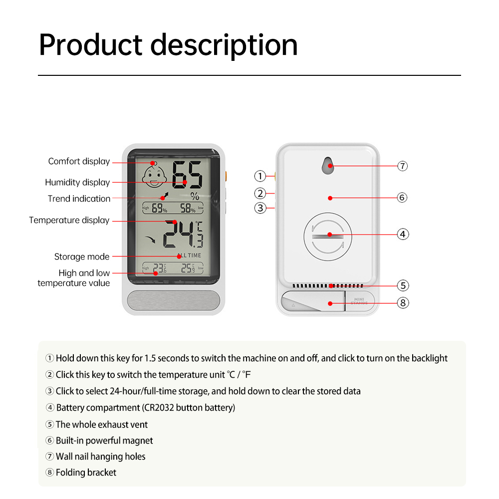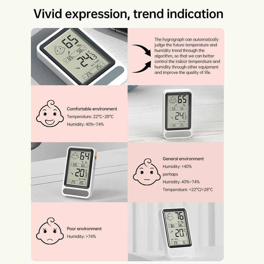 5. Memory master, temperature and humidity track traceable: Automatically record high and low temperatures, as well as high and low humidity historical data, to help you track environmental change trends and provide more scientific basis for healthy living.