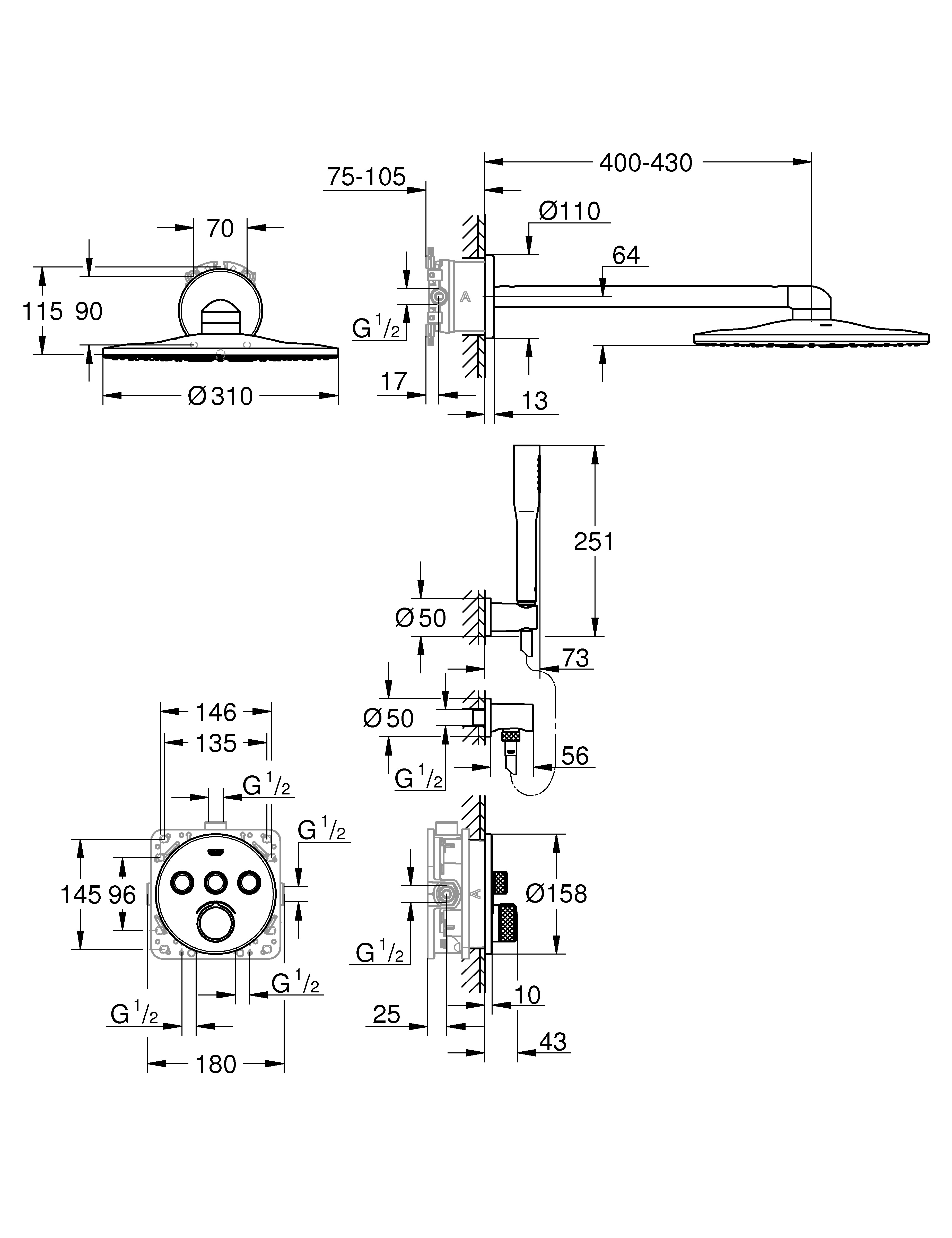 - Système de douche encastré Grohe Grohtherm SmartControl