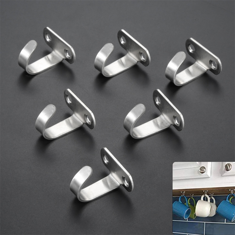 6Pcs Stainless Steel Ceiling Hook Hanger Hanging Coats Towels Garage Top Mount